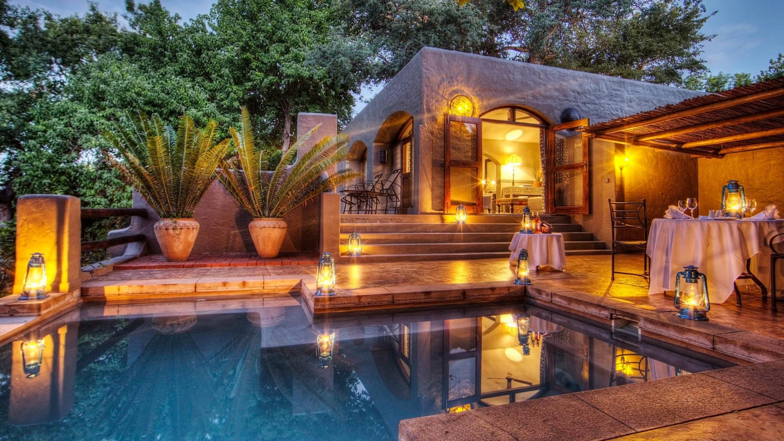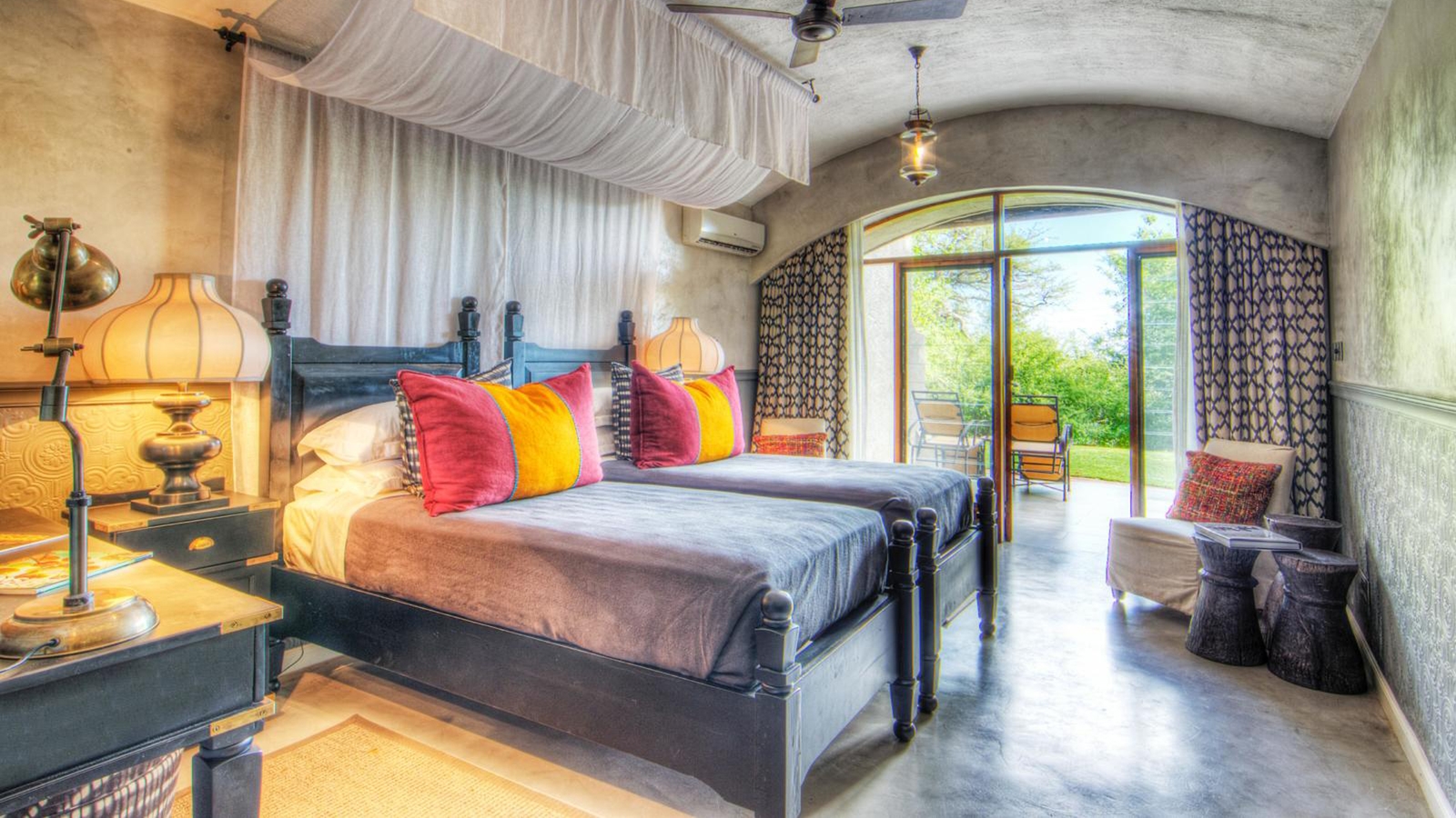 The large property is designed with an Indo-African style, emphasizing the safari feel. All 47 guestrooms boast river views which can be soaked up from private terraces, while the four exclusive suites also offer a lounge, a large balcony and a plunge pool. Dining consists of hearty meals in the terrace restaurant and delicious BBQs in the outdoor boma area. The list of facilities then continues with an open-sided lounge, a terrace, two bars, a small spa and a gym.