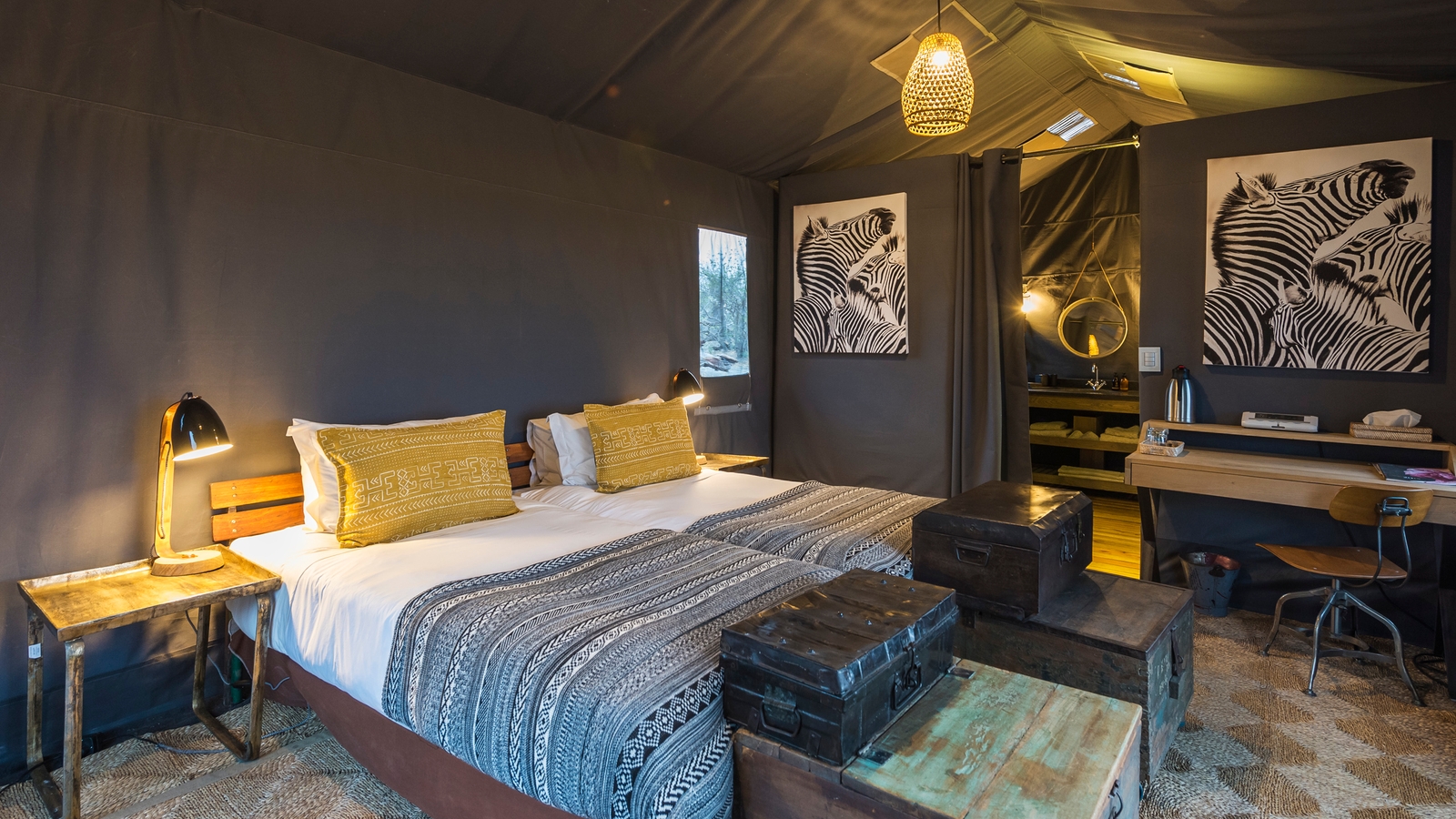 Selinda Explorers is an authentic tented camp drawing on traditions of the classic East African safari with beautifully detailed campaign style furniture made from recycled hard woods, and soft furnishings from Zanzibar and the East. Consisting of only four luxury guest tents, each with their own adjoining en-suite, private open air ‘bustani bathroom’ with explorer themed hot water bucket showers and flush porcelain toilets. Each tent overlooks the Selinda Spillway with a private verandah.