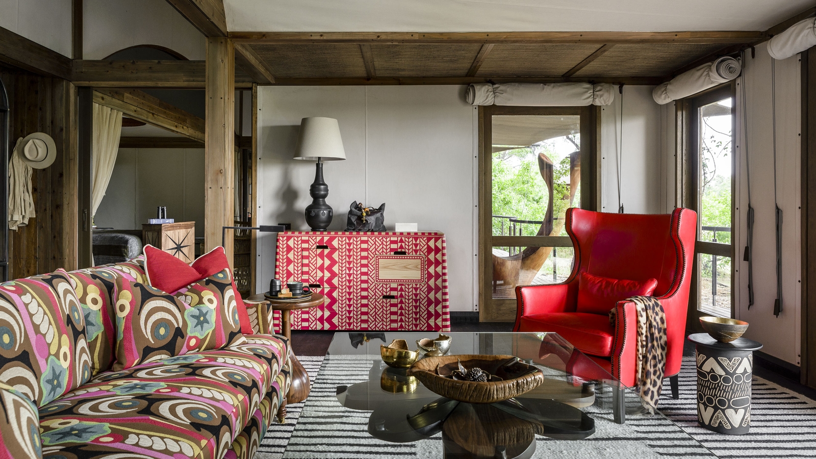 Each spacious tented guest suite has been positioned to offer great views whether you’re relaxing on your deck, or cooling off in your plunge pool. You’ll also find the tents include spot-cooling, meaning you can find respite from the hot afternoons indoors. Spend time investigating the ‘curiosity boxes’ you’ll find mounted on the walls in your room and the drawers filled with fascinating artefacts and information. They’re a great way to learn more about the area’s wildlife and rich history. Look out for unique elephant and wild dog art in the rooms and library made from reclaimed snare wire.
