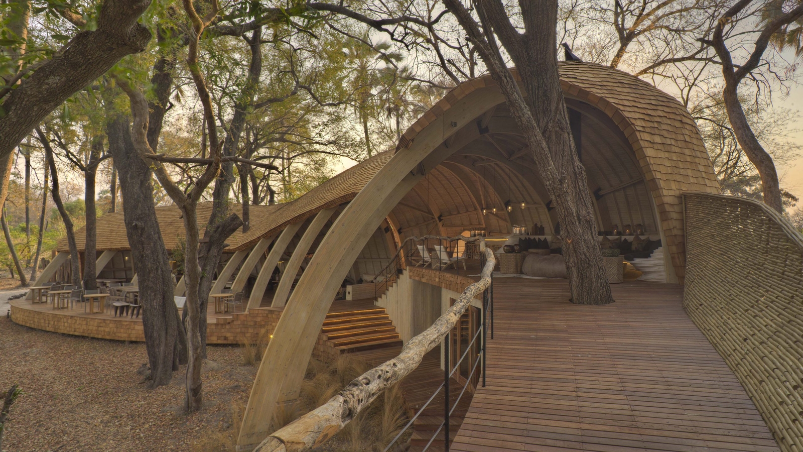 Organic and hand-woven, private and intimate, Sandibe is an architecturally unique hideaway deep in the mighty Delta. Dressed in shades of copper and wood, the lodge’s grand and high interiors open out to even grander views, with spacious decks offering a spectacular spot to drink in the resident wildlife.