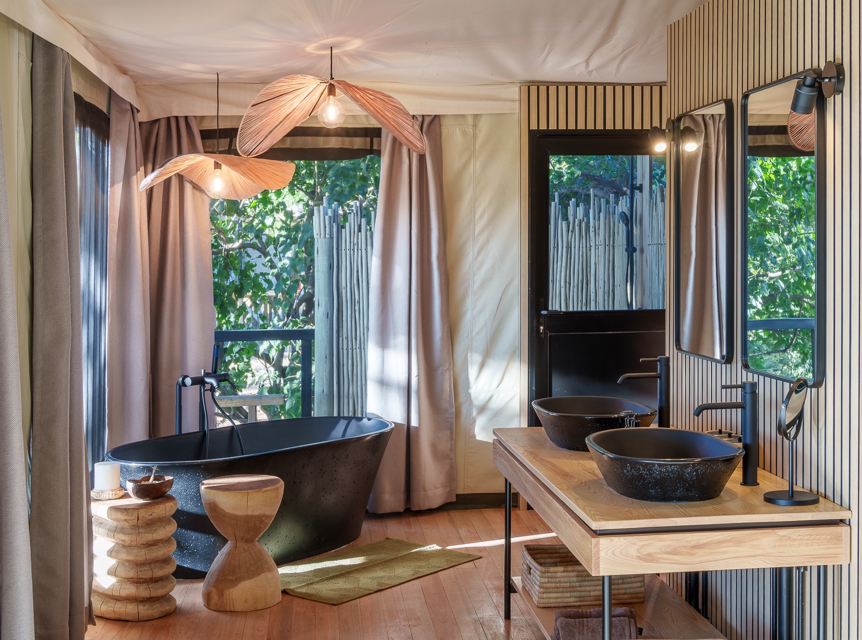 After undergoing an extensive rebuild, Wilderness Little Tubu has been revamped with a minimal environmental impact, seamlessly integrating into the natural landscape. All camp rooms boast uninterrupted views of the Delta’s floodplains. Inside, every detail is meticulously crafted to facilitate a deep connection with nature: the interior incorporates elements of the wilderness, including light oak, live-edge natural wood, textured baskets, rattan, thatch, and accents of black.