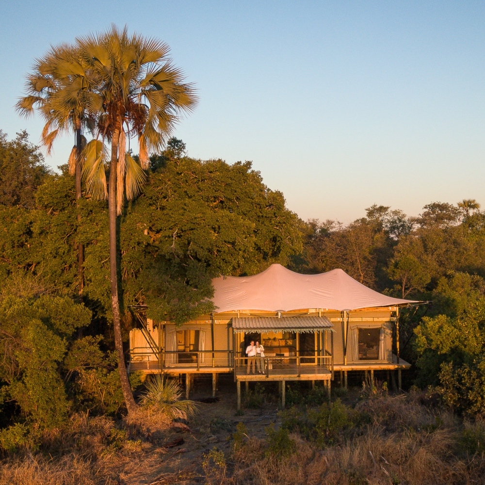 The camp sits overlooking the Linyanti River and the oxbow lake of Wilderness King’s Pool from which it derives its name. Communal areas include a lounge dining area, bar and a shared pool. These all sit on raised decking allowing for excellent armchair game viewing of the river and lake. This part of the Linyanti borders the Chobe National Park, meaning that great numbers of elephant frequent the area during the dry months as they visit the lagoon and river. Other game is abundant too during these months including giraffe, lechwe, zebra and impala, all helping to draw the large predators; lion, leopard, cheetah and wild-dog.