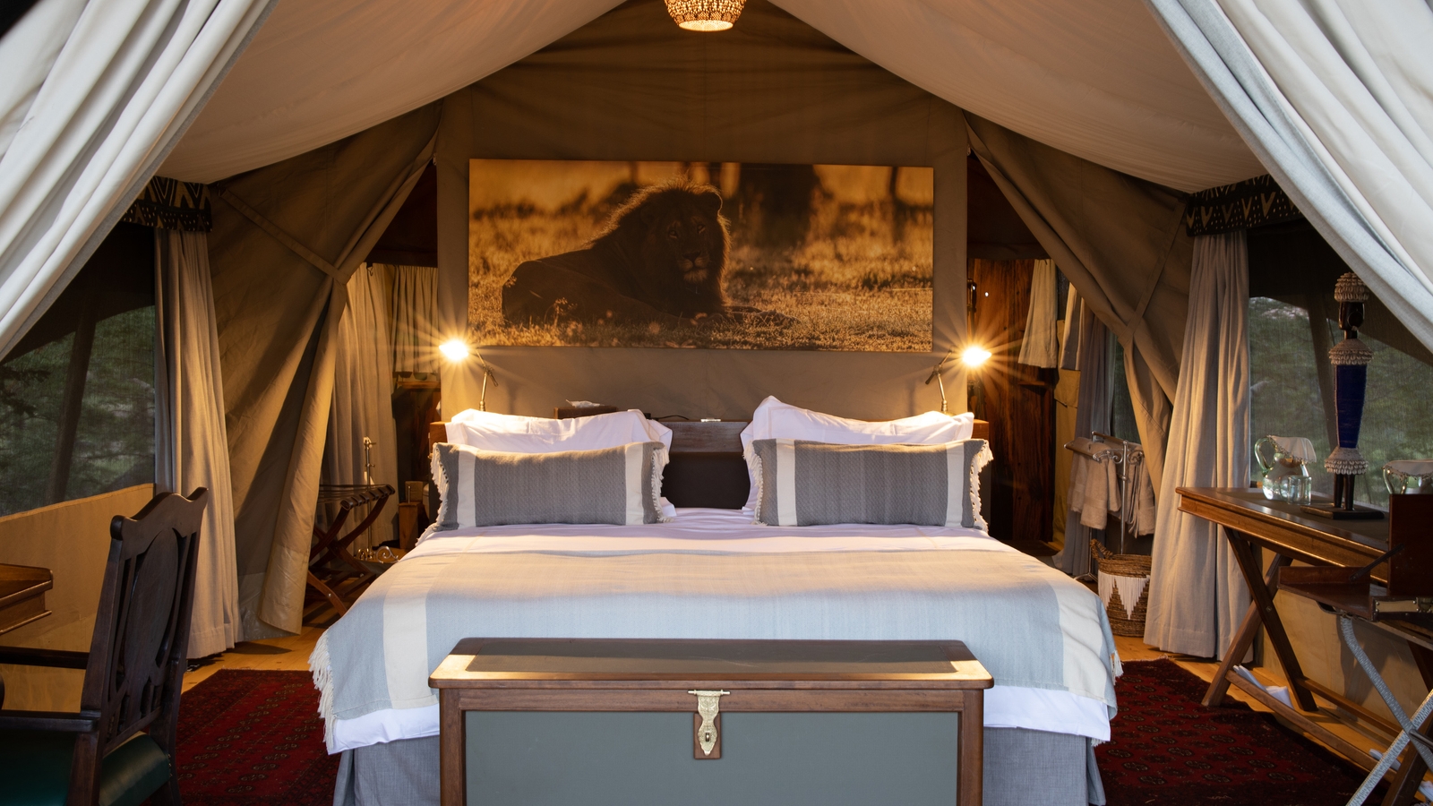 Ol Seki Hemingways is located in the heart of the Naboisho Conservancy which borders the world-famous Maasai Mara. The camp consists of nine luxurious tents scattered across the rocky escarpment, offering incredible views out over the Ngama Hills. Each stylish tent has been designed to offer secluded privacy and spacious accommodation. Neutral tones intermingle with the Bedouin style tents, whilst locally sourced fabrics and furniture, a large comfy bed, and a writing desk add further comfort. There are six domed Nina tents and two expansive family suites titled Simba and Chui.