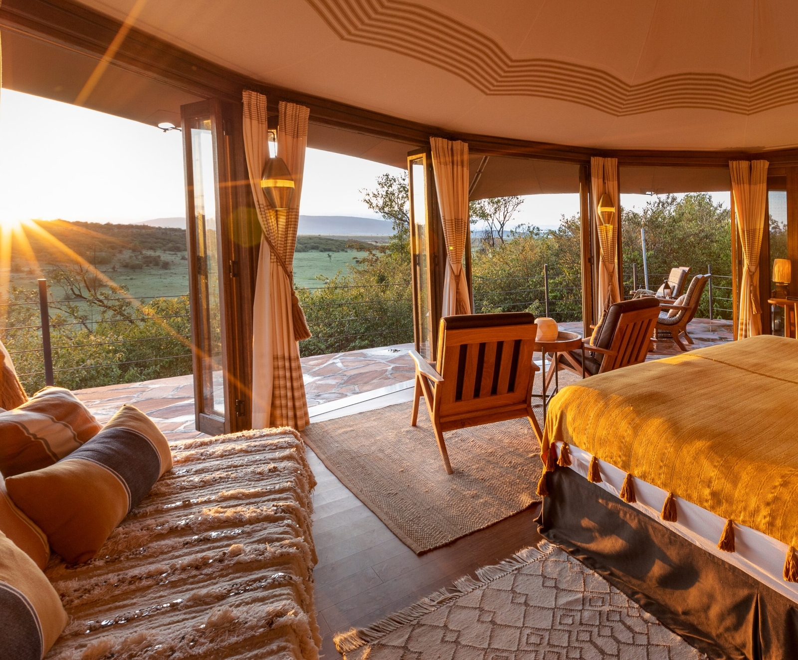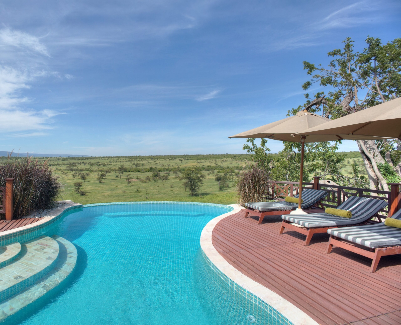 On the main deck guests can congregate around the campfire and enjoy a sundowner while exchanging stories from the day. There is also a library with comfy leather chairs and a selection of safari literature. Guests can also enjoy access to an inviting swimming pool, allowing you a chance to cool off while absorbing the stunning natural surroundings. Alongside game drives you can enjoy a picnic in the reserve for lunch, meet the local Maasai herdsmen, or soar above the plains in a hot air balloon.