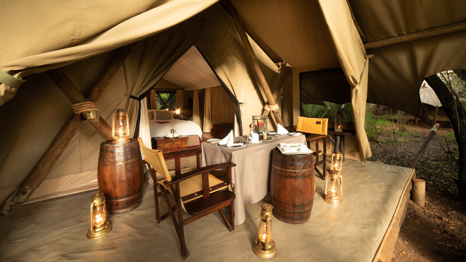 Mara Toto is a small seasonal camp nestled in a thick ebony grove in a small bend in the Ntiakitiak River, just a few kilometres from its sister camp, Mara Plains. The camp draws from Africa’s original explorers’ designs and will appeal to those interested in East Africa’s romantic safari era. It’s name comes from the Swahili word for “favourite child”, which is fitting considering how quickly it becomes a favourite for anyone who stays there. With just four tents that can sleep eight people, it is ideal for small groups looking for privacy in a stunning setting. The tents have plumbed-in hot and cold water for bucket-effect showers.
