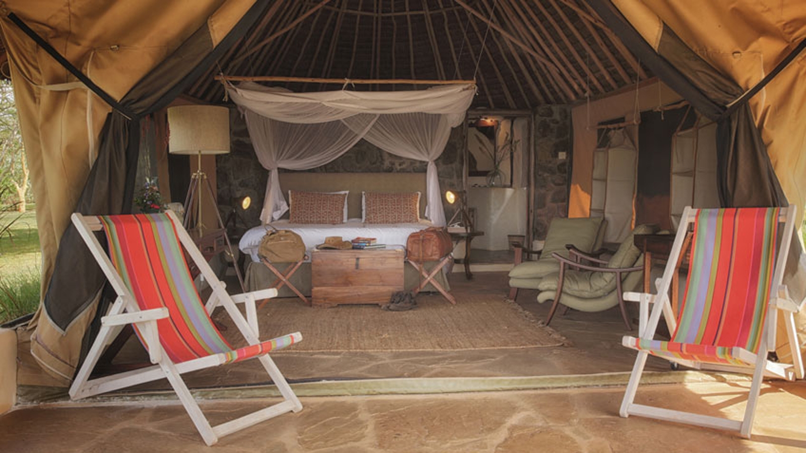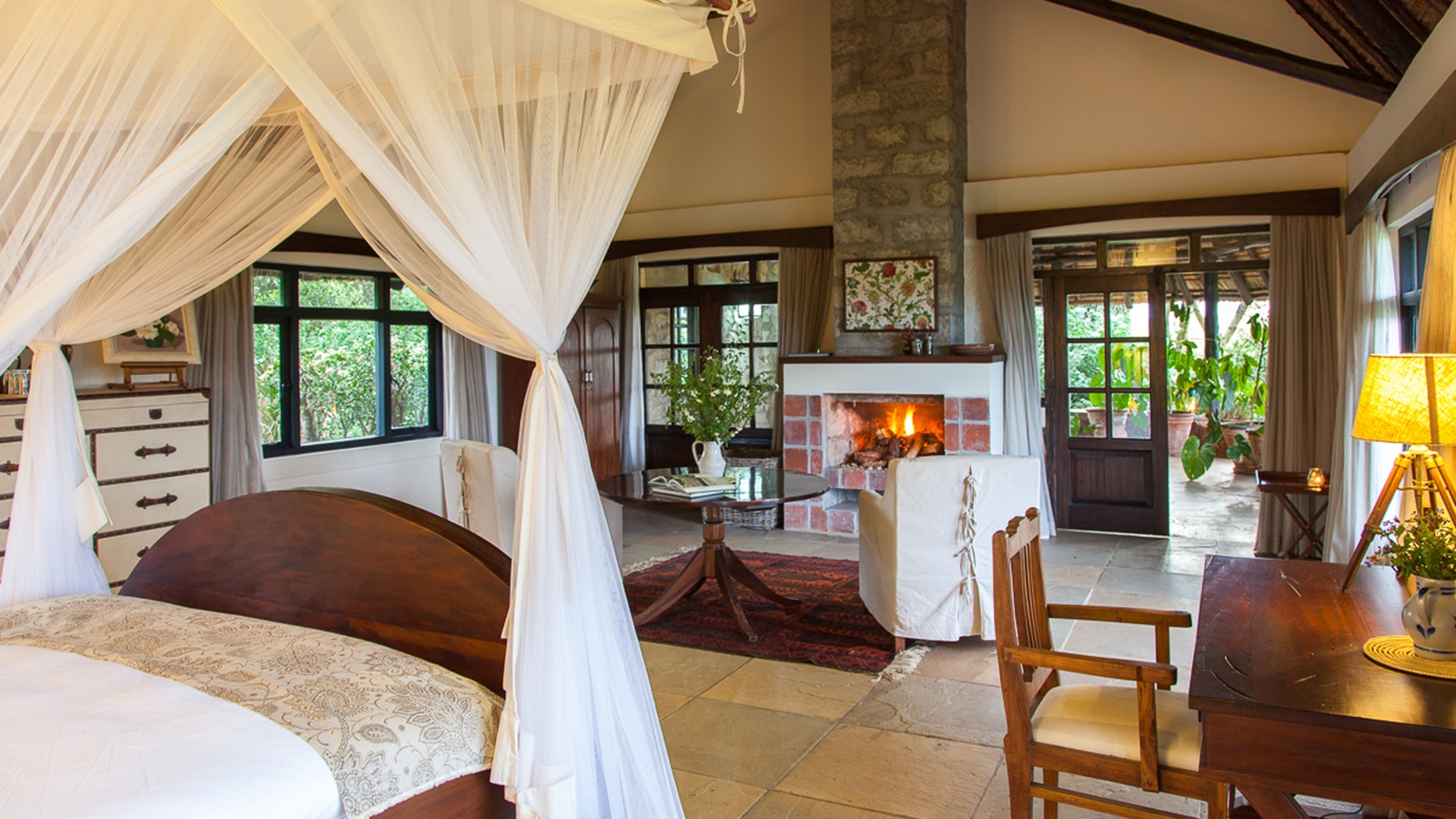 The 13 suites are spacious and luxuriously furnished, from the airy Terrace Room with its marble bathroom and private terrace, to the safari-style tented cottages. Or you could climb the spiral staircase to The Tower Room which boasts breath-taking views out over the park towards the Ngong Hills.