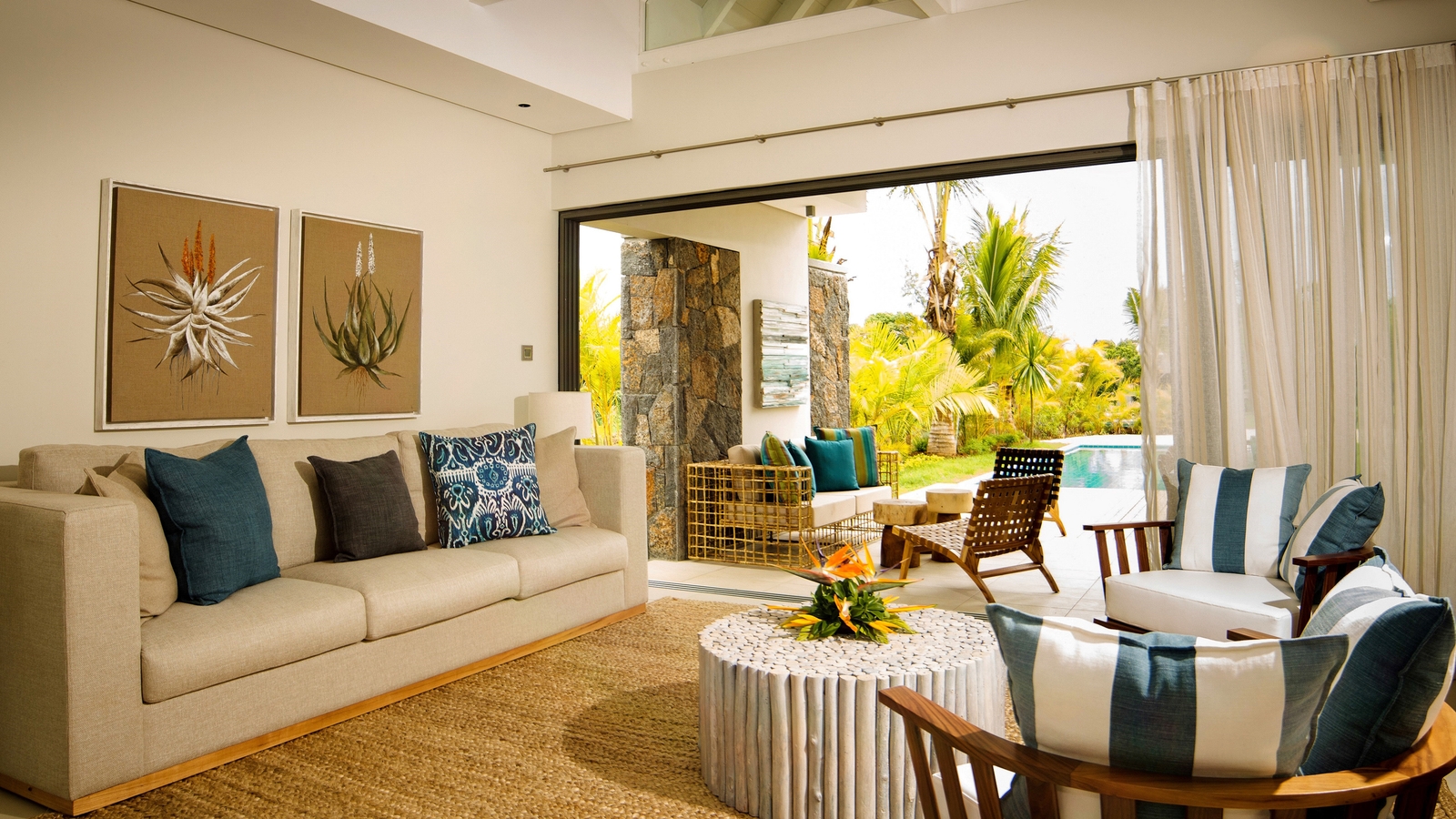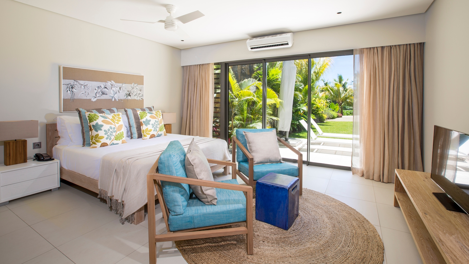 The resort features a selection of suites and villas, offering views of the garden, the golf course or the sea. Some of the bigger suites have their own plunge pool, while the villas (one to five bedrooms) have their own bigger pools and private gardens. Decor is contemporary and fresh, in keeping with the rest of the resort and its relaxed beachy vibes.