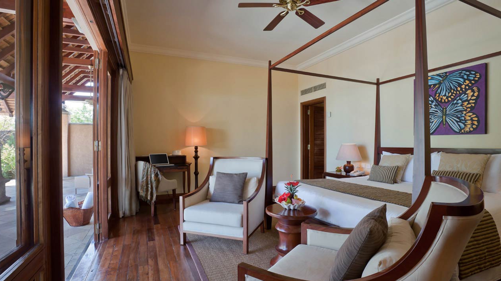 Surround yourself in island luxury in a private villa at this opulent resort on the west coast. The Indian-inspired decor fits perfectly with the resort’s stunning natural surroundings.