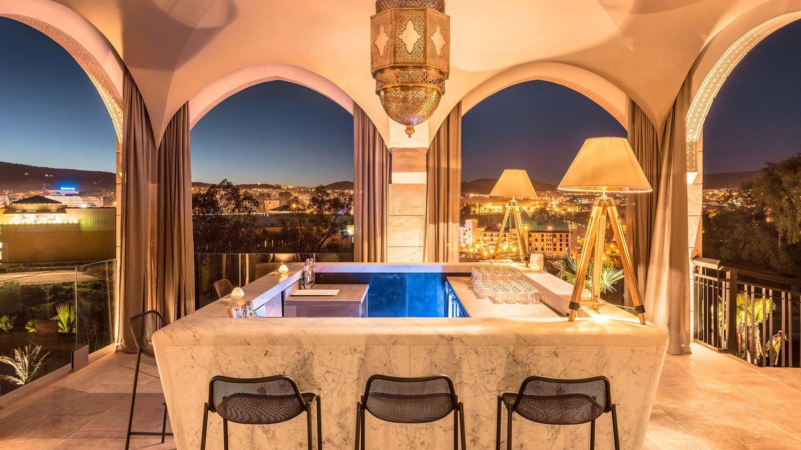 On the site of a former colonial palace with views taking in the old medina, the Hotel Sahrai is a strikingly modern take on Moroccan architecture.