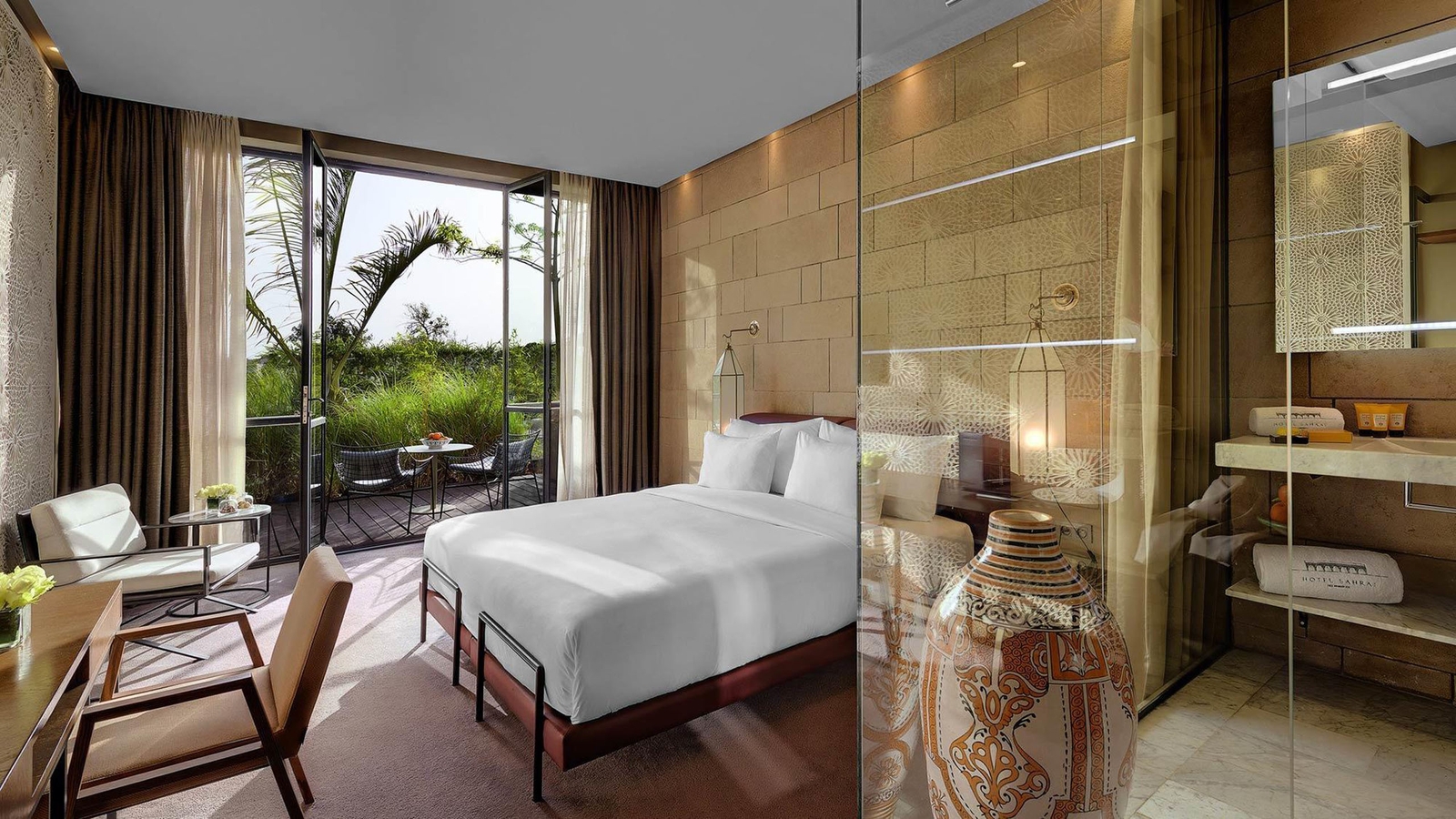 Great arches, mirroring the former façade, shade colonnaded pathways that lead into lush atriums and to 50 stylish rooms and suites, some of which have their own private terrace area.