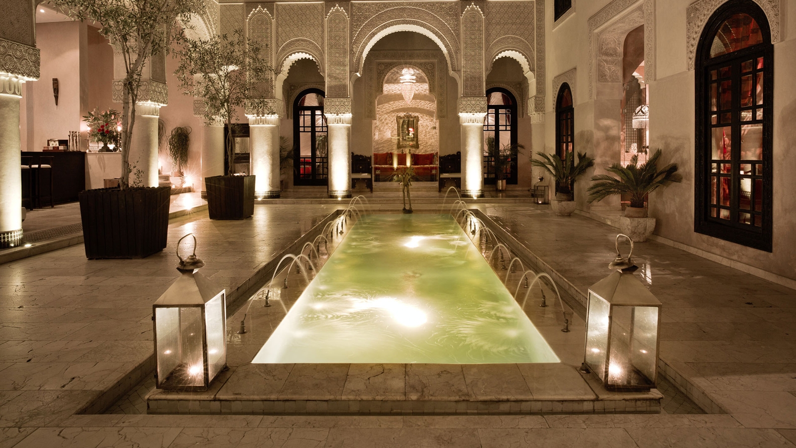 Around these, find 30 rooms and suites – the largest of which are positively palatial – refined Moroccan food in L’Ambre Restaurant, hammams, lounges, a wine bar and a library.