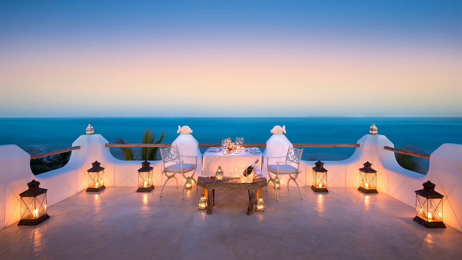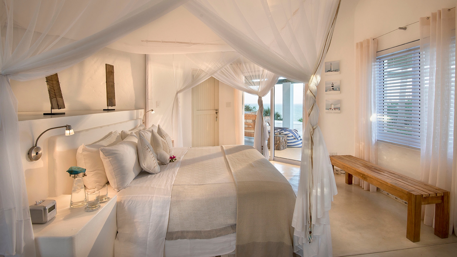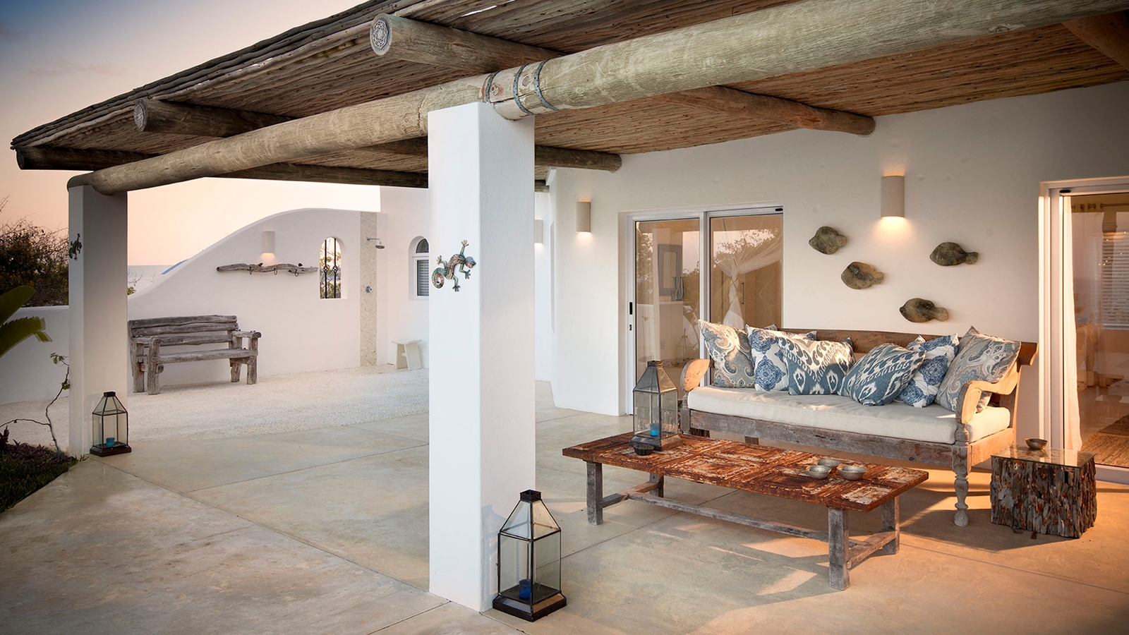 The clean design of the luxurious Santorini Mozambique reflects the pale sands of Vilanculos Bay and the hue of the sea it overlooks. White washed walls, touches of blue and several airy levels evoke images of idyllic Greek islands.