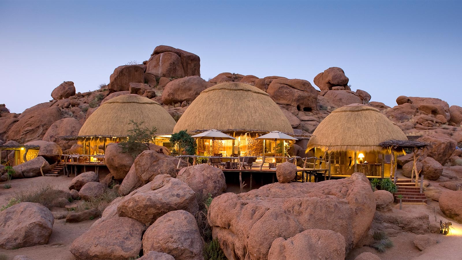 Huddled among – and even built around – huge orange boulders of a rocky outcrop in the dry grasslands of the Aba Huab Valley, Kipwe is a gem of an eco-friendly camp.