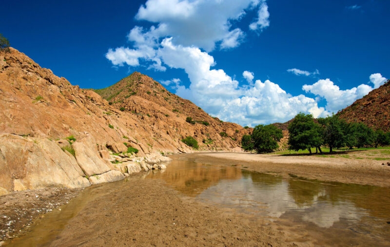 Enjoy guided driving tours in Koakoland, take scenic flights over the Marienfluss valley, or head out on safari to see desert elephants, lions, leopards, cheetahs, as well as the more common game of zebras, giraffes and antelopes. In the north, one of the natural highlights of this beautiful region is Epupa Falls, on the Angolan border. Beyond the natural beauty, taking time to visit Puros villages gives you the opportunity to meet with members of the Himba and Herero communities, learning about their cultures and traditions in a meaningful and considerate way.