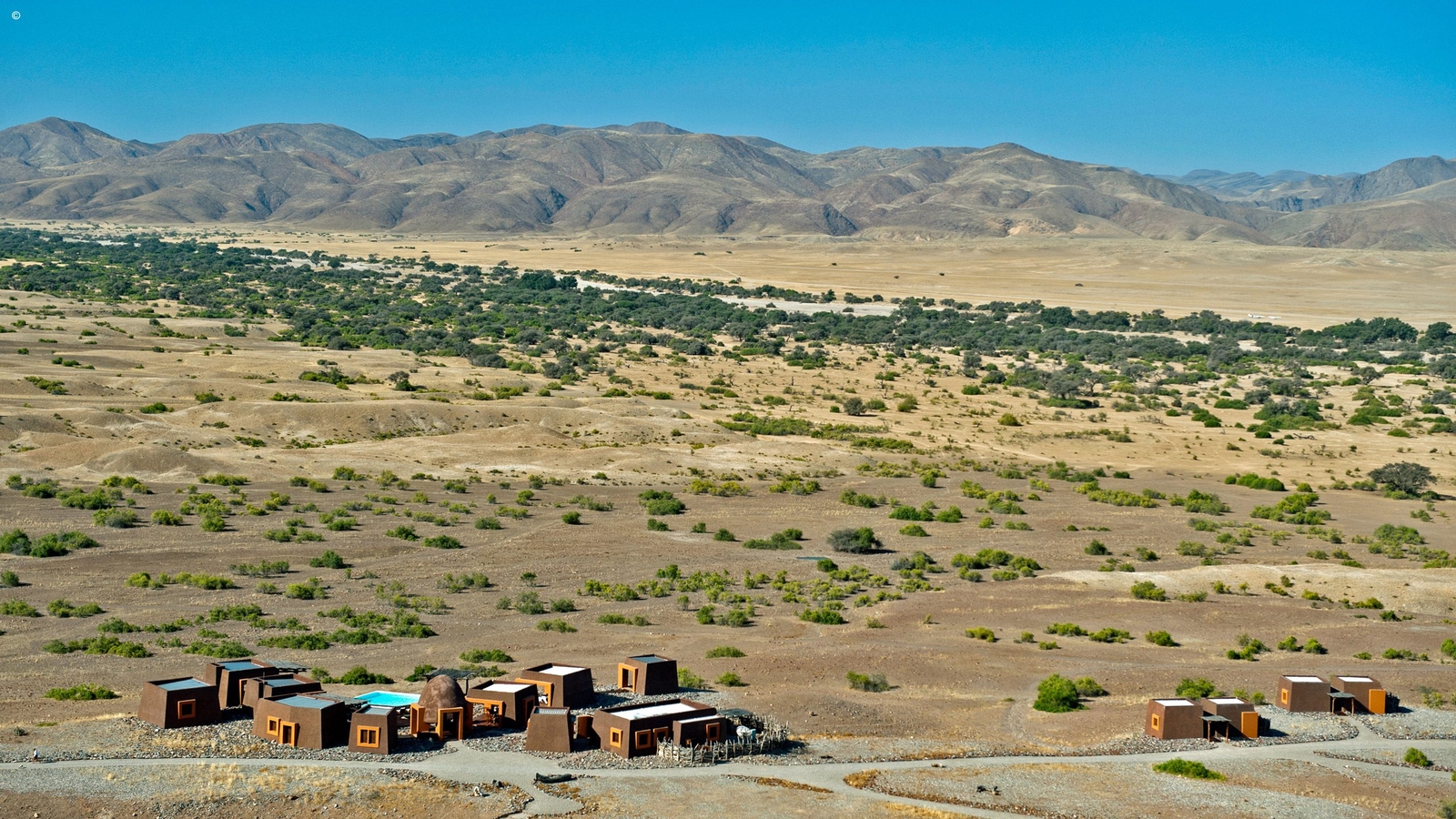 One of the most striking things about the Okahirongo Elephant Lodge are the views you get from every angle that you sit, stand or lie. Even from your bathtub you get scenes of the Hoarusib River below, the jagged outlines of the Purros Valley mountains in the distance sometimes accompanied by the remote roar of desert lion.