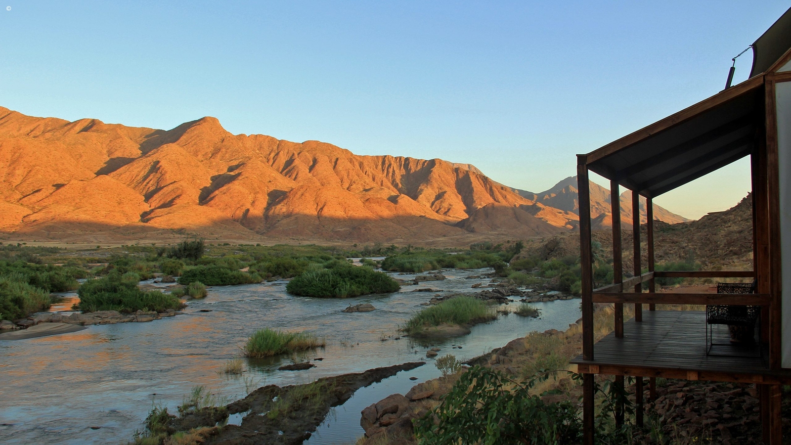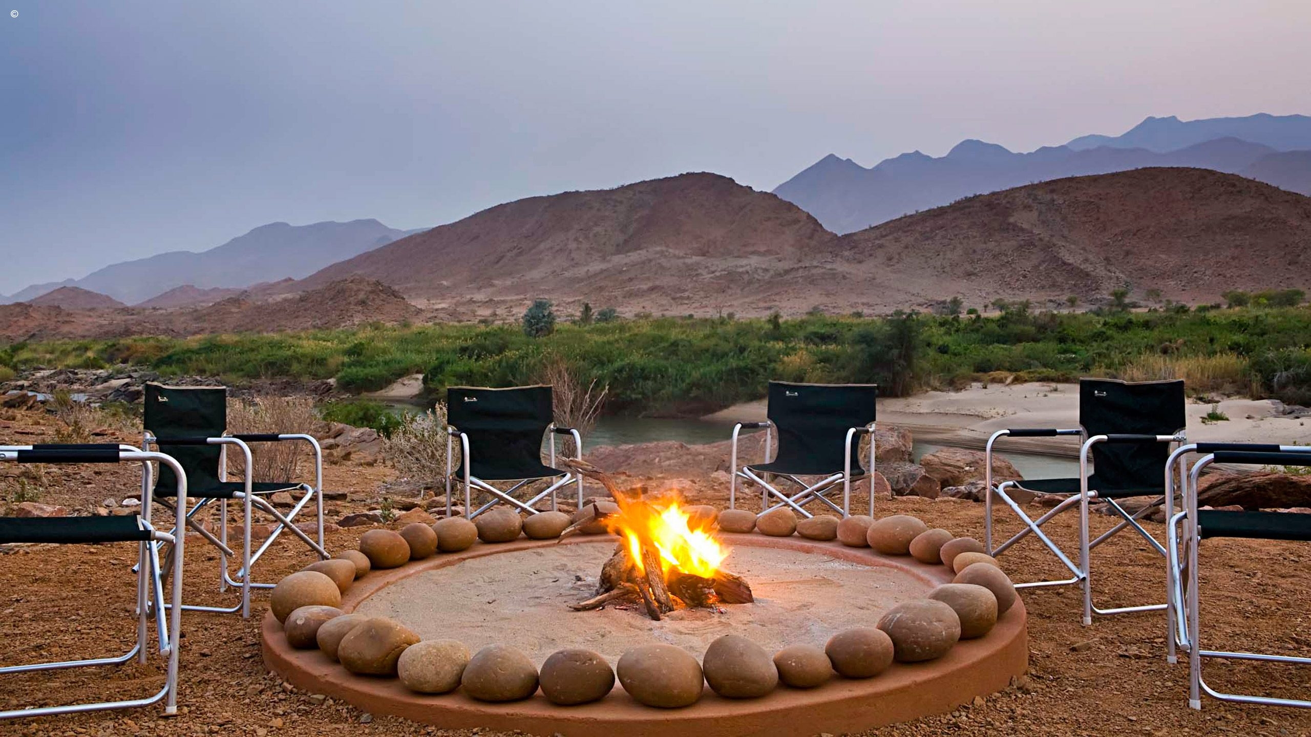 Wilderness Serra Cafema is an intimate, peaceful camp with a unique mix of rustic and luxury elements nestled amongst the shady Albida trees on the banks of the Kunene. Rapids just below camp provide a calming ambiance with guests often lulled into dreamland by the gurgling waters after a day exploring one of the driest, starkly beautiful regions in the world.