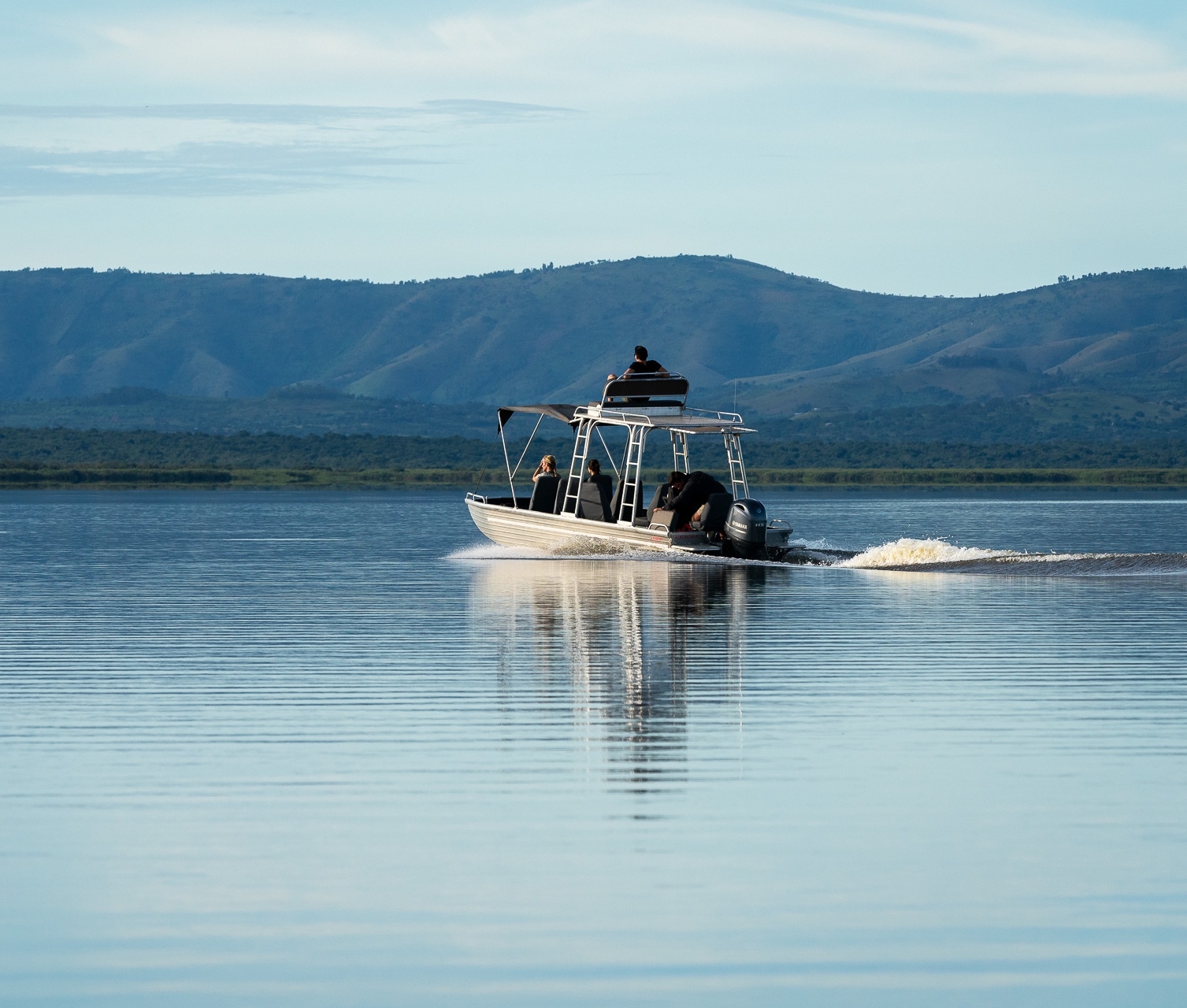The camp comprises a stunning four-bed villa and two twin suites, each elevated to maximise the panoramic views over the lake. Private plunge pools invite moments of quiet reflection and the villa’s multi-purpose room is adaptable as a gym, office or family space. Personalised in-villa dining and a dedicated private guide transform each stay into a deeply personal journey, allowing you to explore the wilderness at your own pace. Embark on a morning game drive, glide silently through the waterways on a boating safari or set out on a guided nature walk.