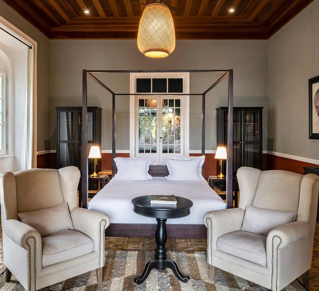 A refined bar can be found in the Colonial House, as can the hotel’s restaurant that opens up onto a terrace with extensive views of the treetops. The menu, which is centred around local cuisine, offers dishes created with fresh, seasonal products from the hotel’s organic gardens and producers on the island.