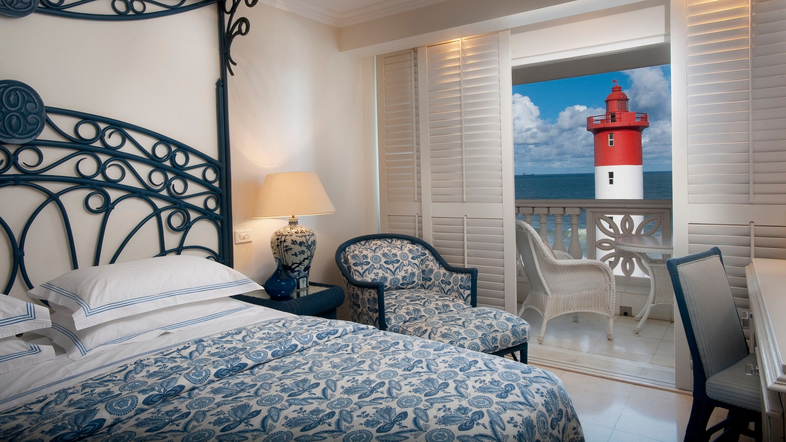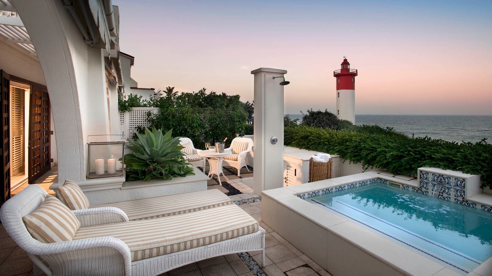 With an infinity pool that seemingly drops into the Indian Ocean beyond and under the watchful gaze of a traditional red and white lighthouse, Oyster box is your quintessentially colonial seaside hotel with an elegant modern polish.