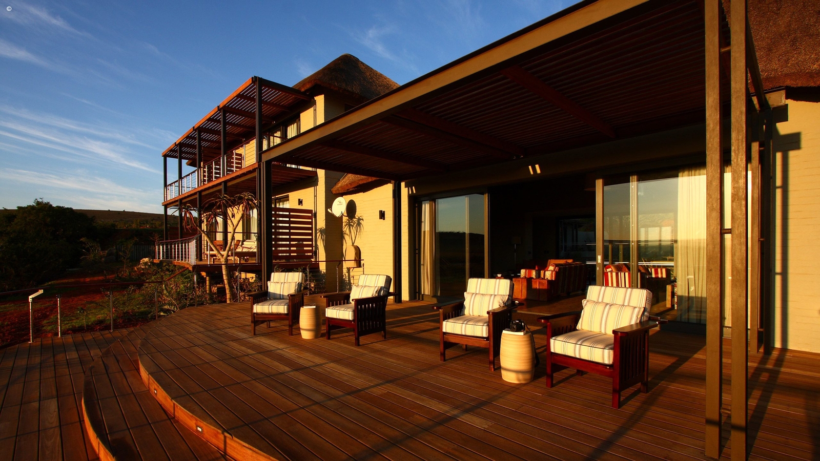 With its steep thatched roofs, indigenous timber structures, stone chimney fireplaces, wide open verandas and its perfectly poised position on the steep Great Fish River banks, this lodge successfully recreates the very homely, historical feel of an early settlers farmhouse.