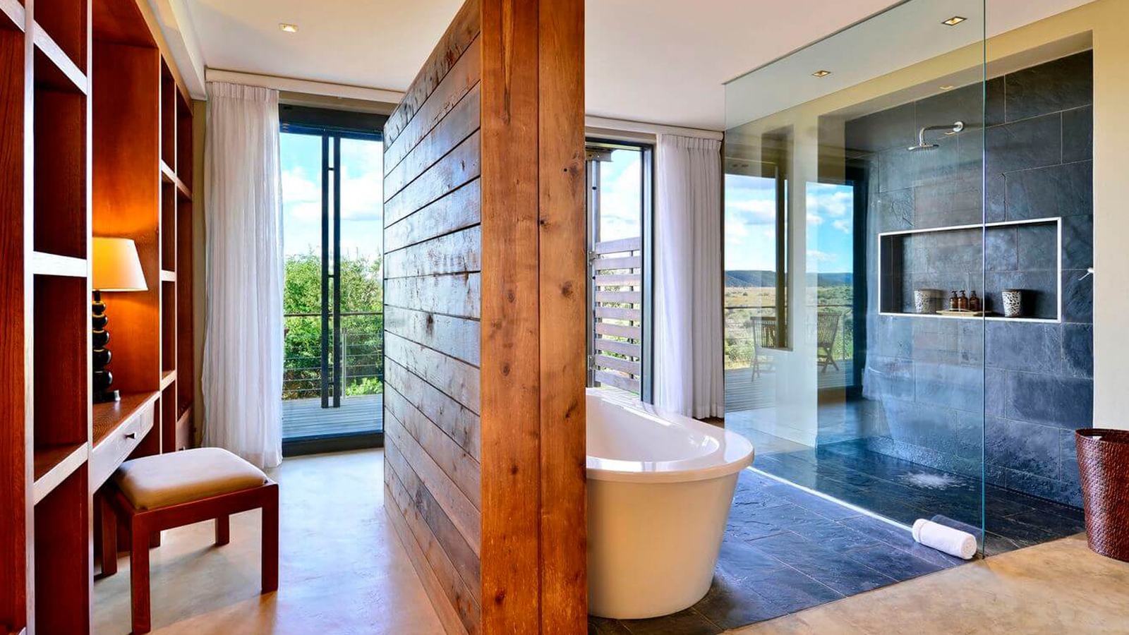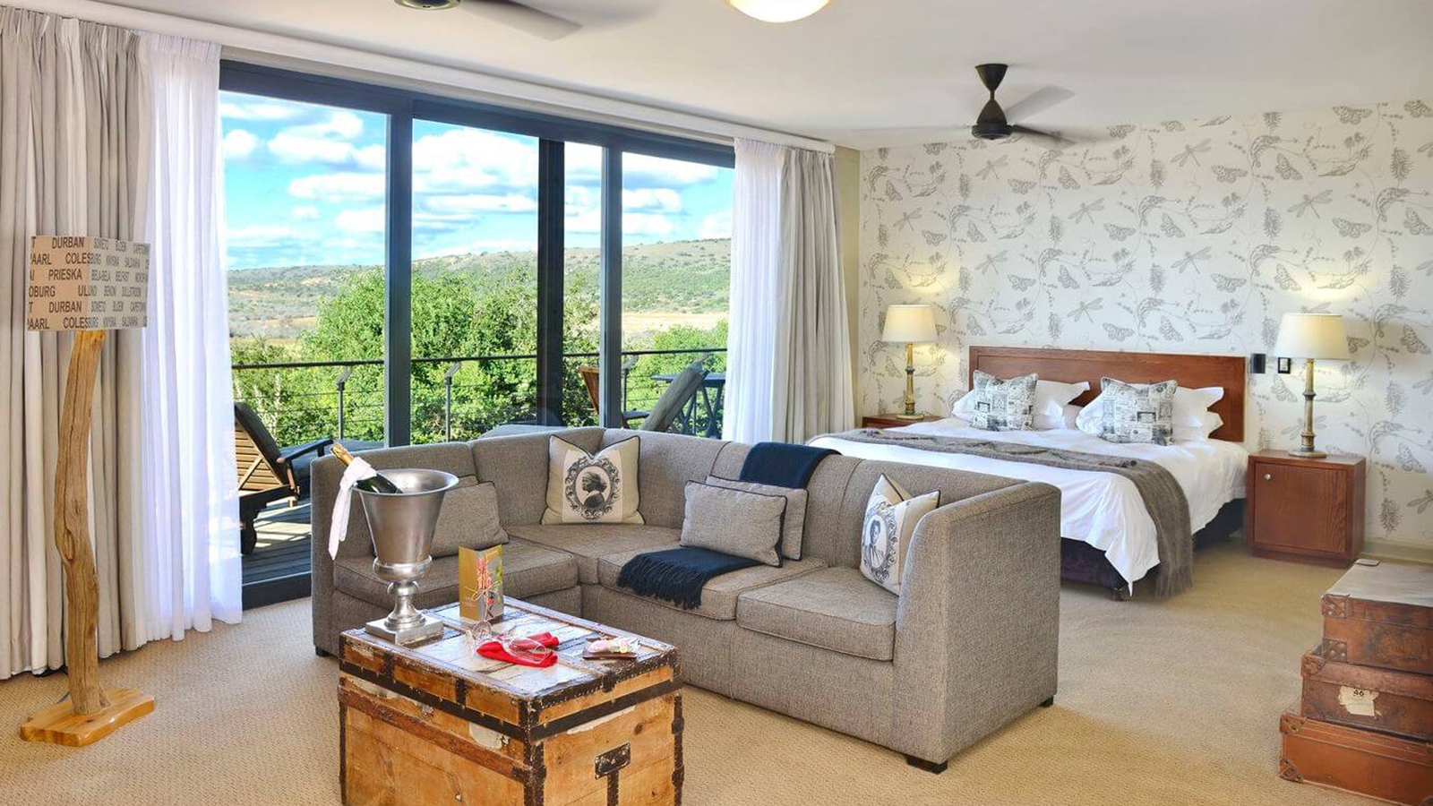 The lodge’s five rooms are light and welcoming. Large windows and balconies bring the bush closer, while some rooms lead onto a quiet courtyard.
