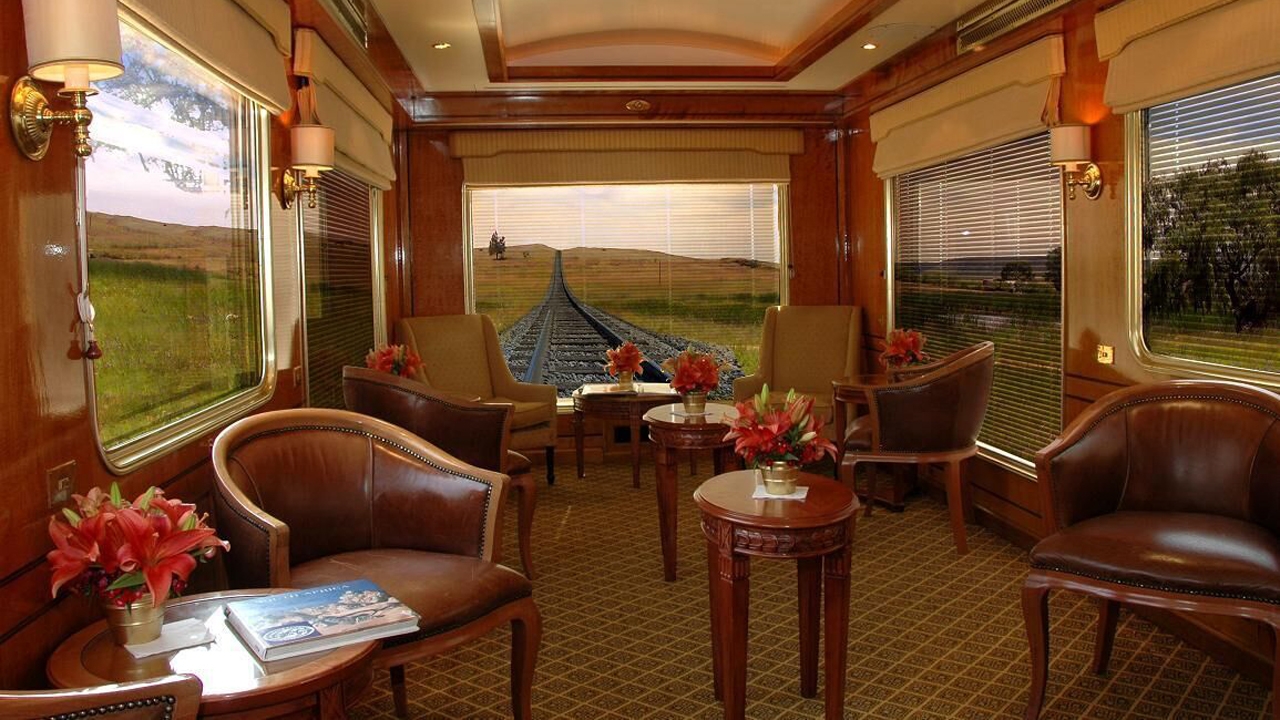 Bedecked in all the elegant splendour of the locomotive era, all the carriages, suites and lounges are panelled in wood with the familiar brass fittings, large panoramic windows and comfortable furniture. Gourmet food prepared by a top chef and fine regional wines are served by uniformed waiters in the smart dining car where tables are dressed in white linen tablecloths, sparkling cutlery and crystal glasses. There is nothing more sublime than watching the landscapes flit by over a lunch of oysters, Karoo lamb and a reserve bottle of Vergelegen wine. Dinner orders a strict dress code too: dinner jackets for the gentlemen, elegant evening wear for ladies.