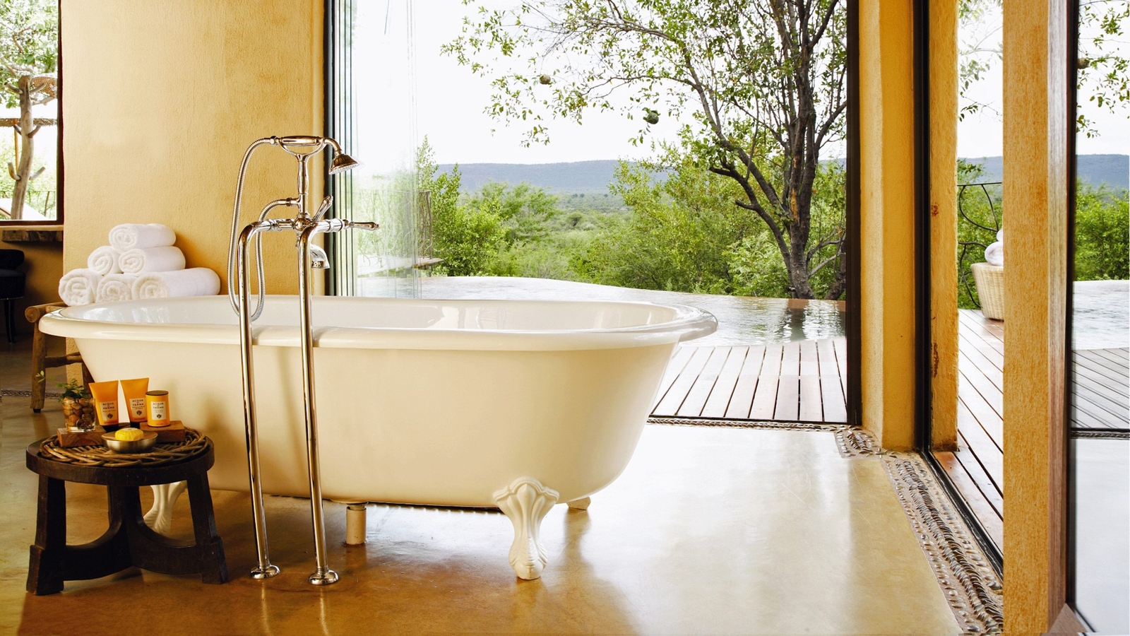 Each of the suites enjoys a pleasing amount of seclusion being well-spaced apart and with their own private decking, infinity plunge pools not to mention magnificent views of the Dwarsberg mountains and surrounding bush of the Madikwe. The two 600sqm presidential suites (Metsi and Molelo) are decorated to the zenith of luxury with Phillippe Starck bathtubs, Fendi loungers and Swahili tables – but again, the glitz is played down to make way for the breath-taking surrounds.