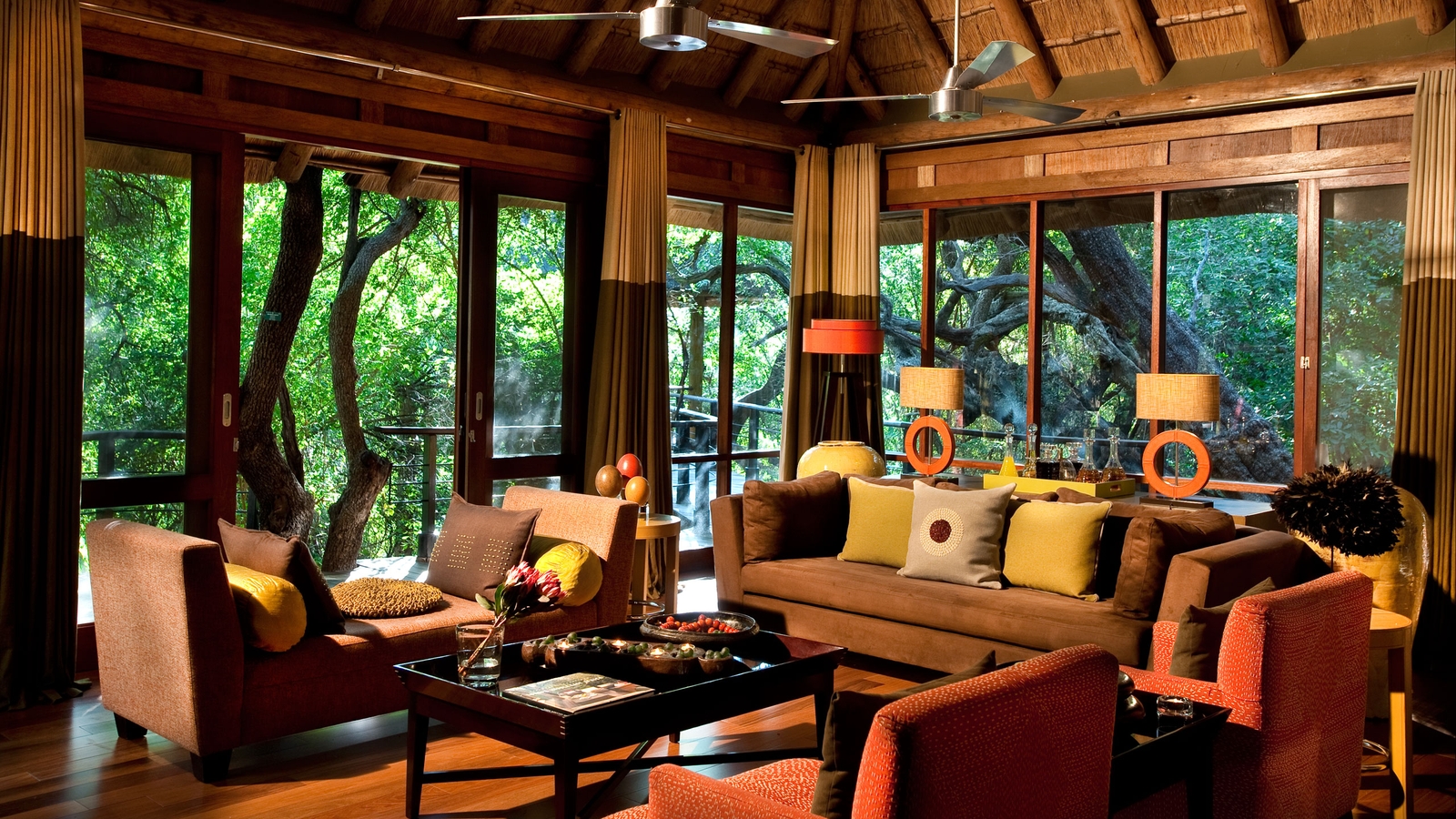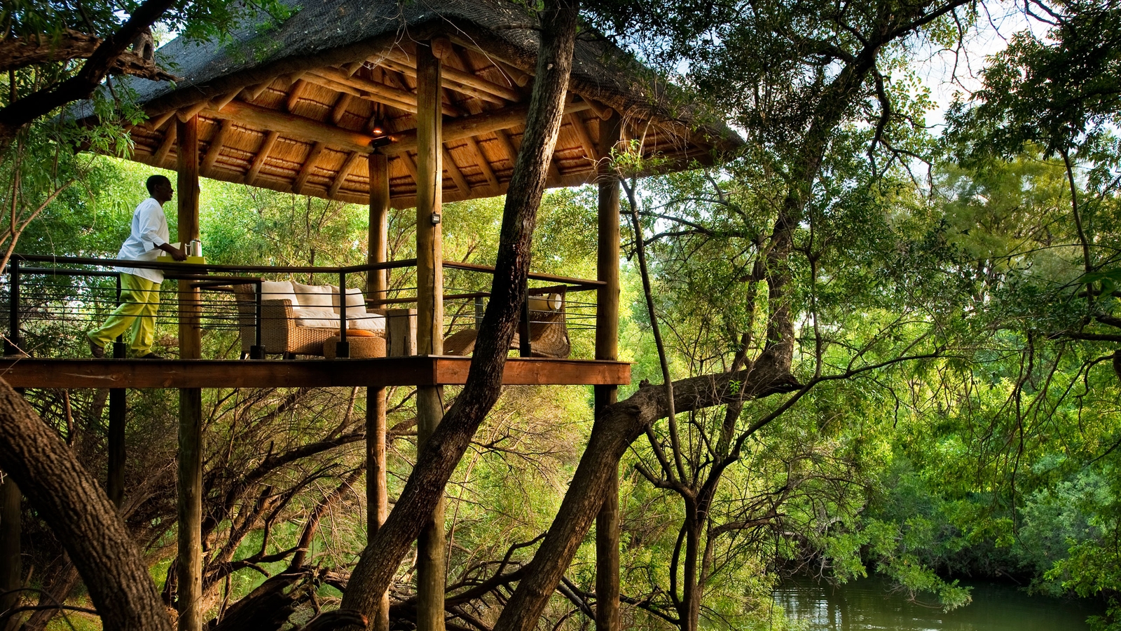 The wooden and glass structures are beautifully constructed as a blend of European and African styling, designed to blur the lines between indoors and outdoors. Lying in bed with the doors wide open, listening to the sound of nature as your personal team of eight discreet butlers wait on your every need.