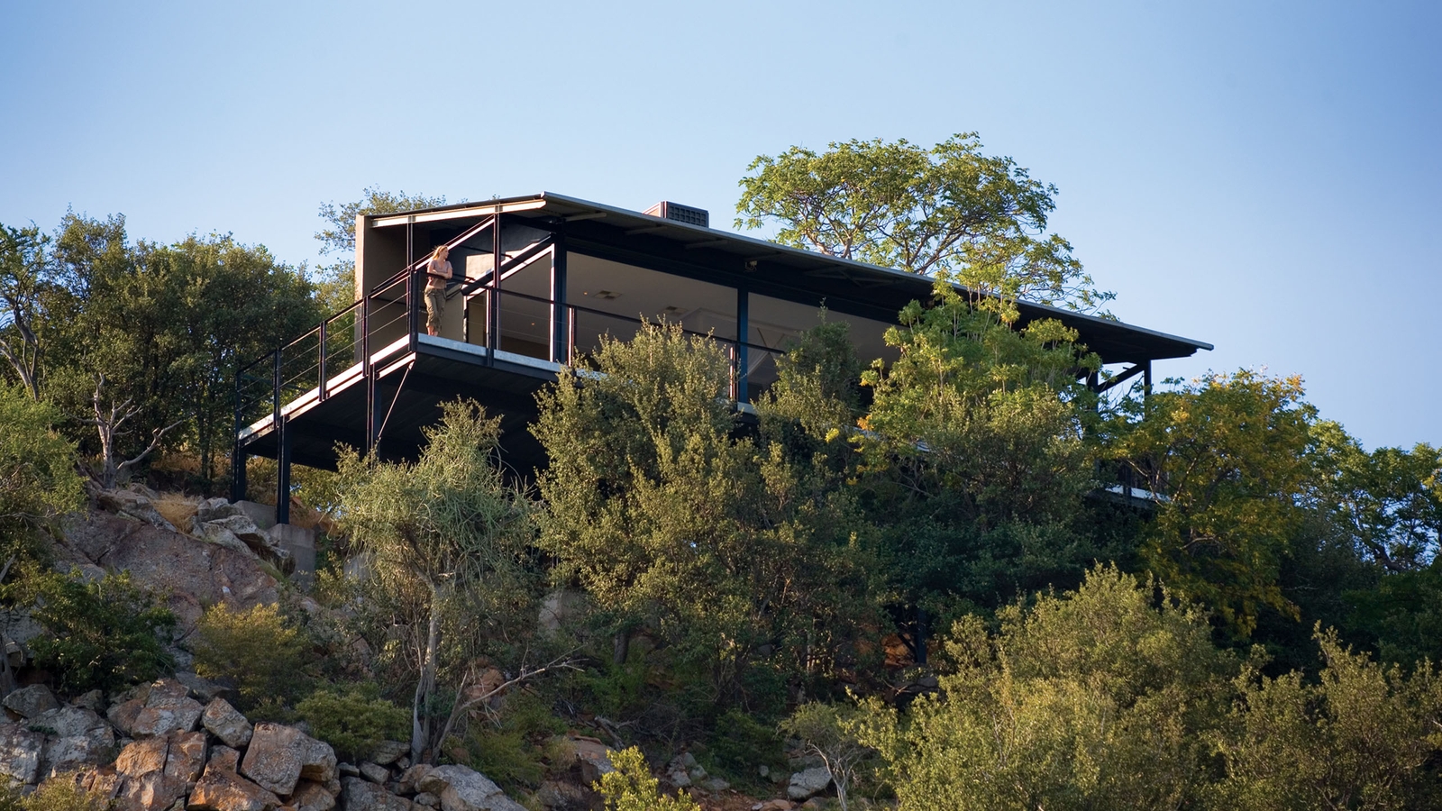Sitting high on a hilltop, The Outpost is a piece of contemporary luxury design amid the remote wilderness of the Kruger’s northern Makuleke concession.