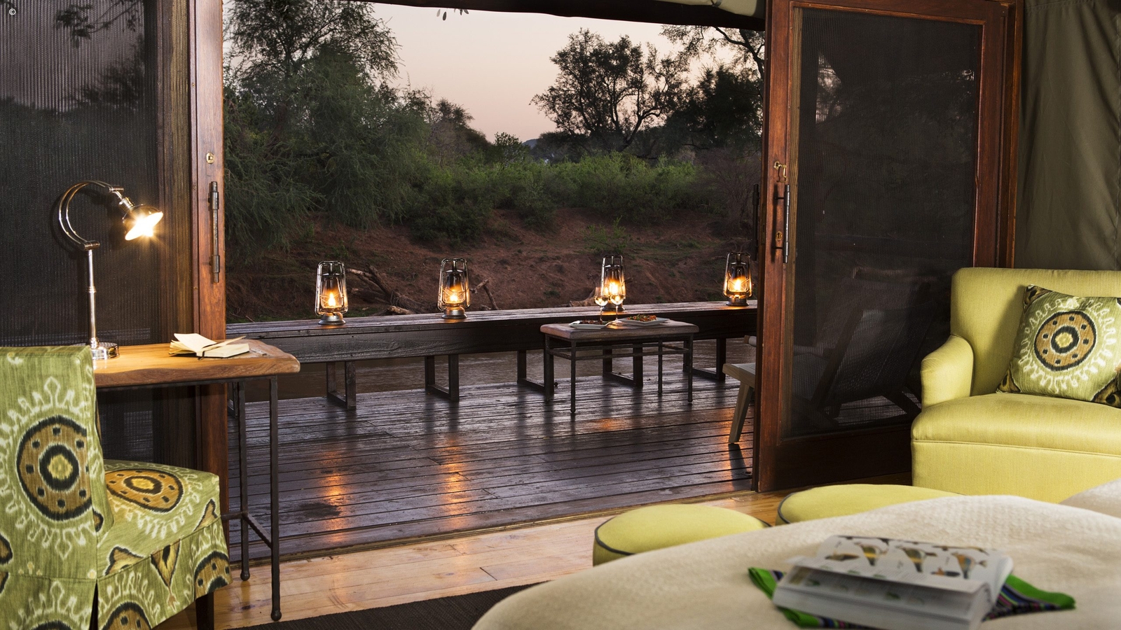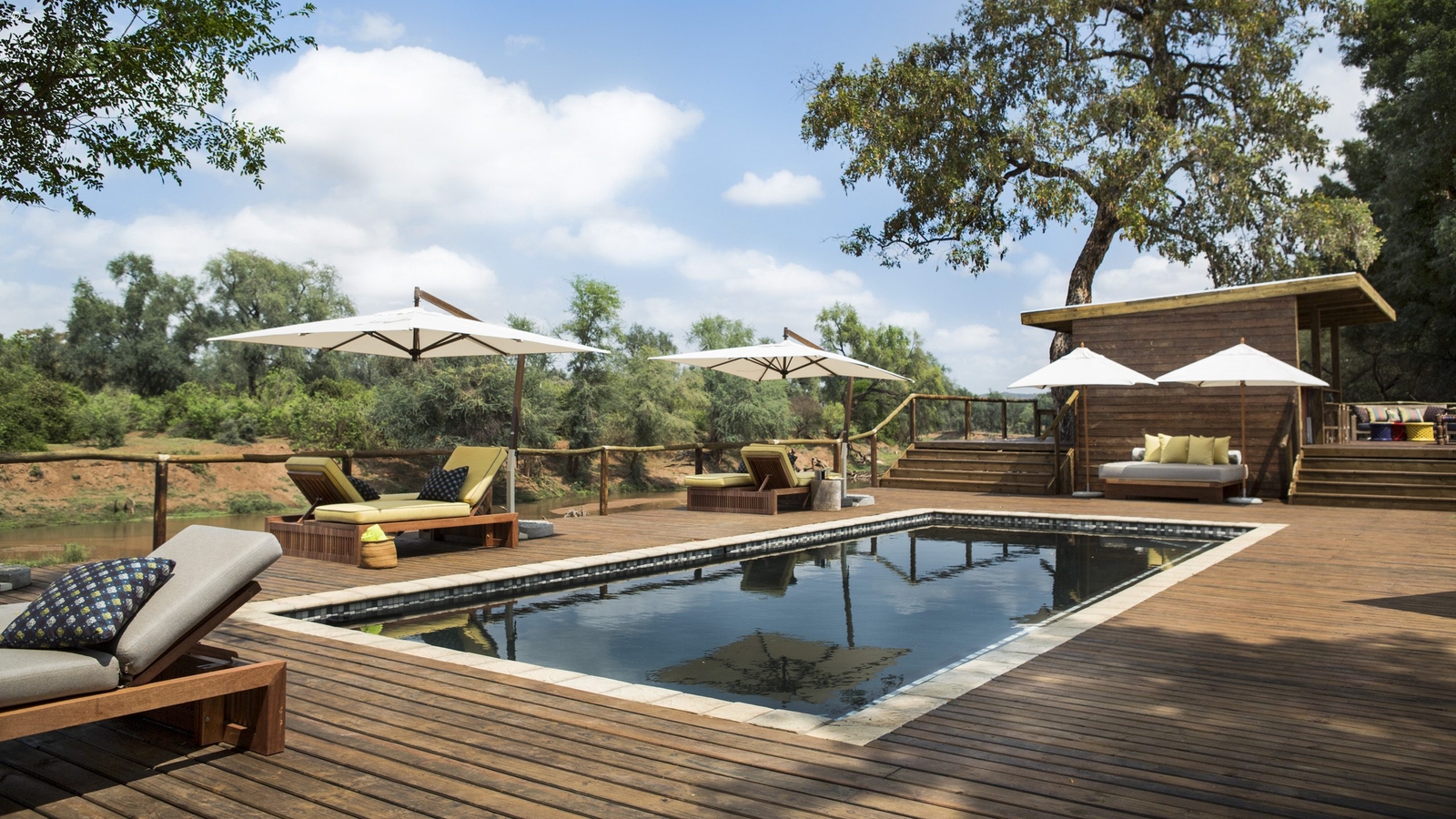 All the rooms offer gorgeous views over the perennial Luvuvhu River, a vital source of water during the dry winter months, a vista shared with the dining area, swimming pool and bar.