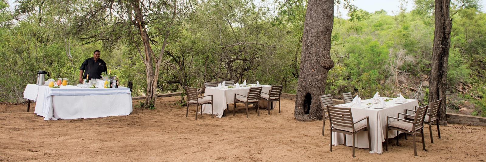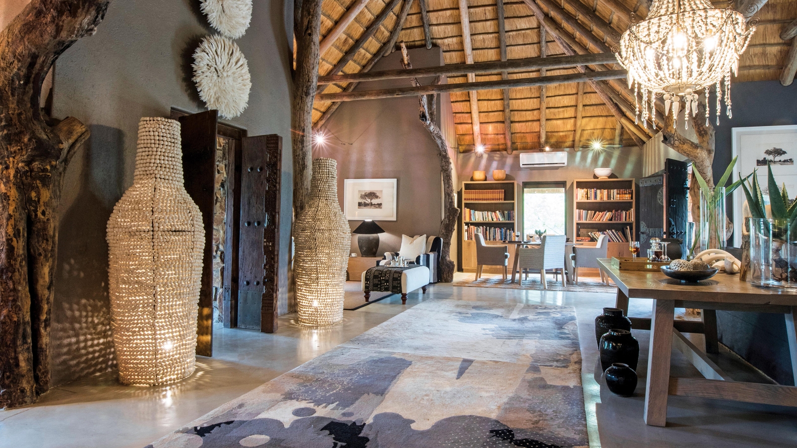 The elegant dining room offers further views alongside decadent meals, while a cosy lounge and massage sala provide even more sumptuous spots to relax. The library is a peaceful spot and guests are welcome to browse through the large selection of literature and African journals.