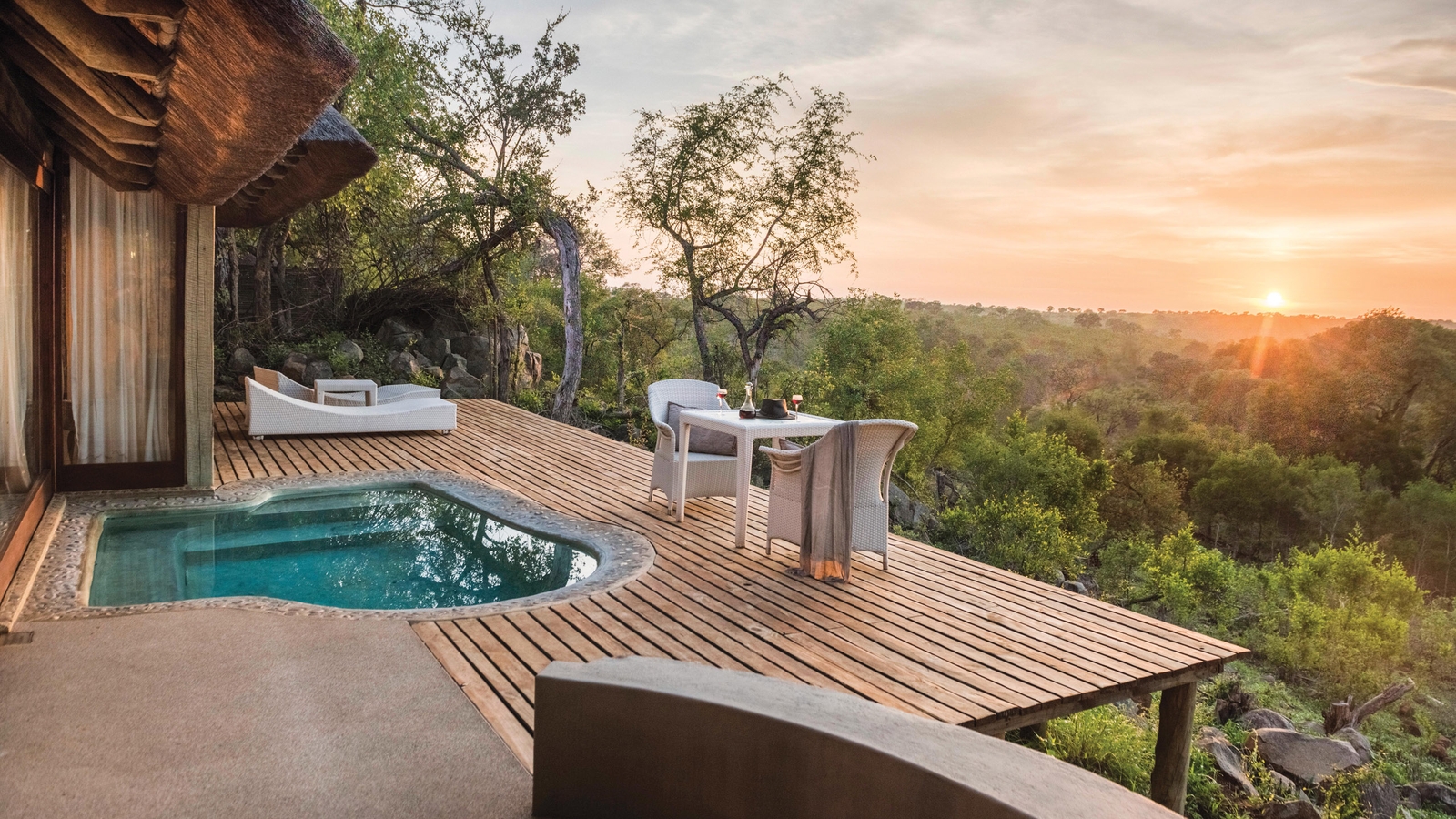 The property boasts eight beautifully decorated and entirely luxurious glass-fronted suites. Complete with sundecks and rock plunge pools, the suites enjoy amazing African bushveld views.