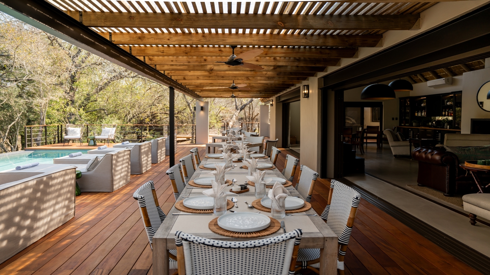 Communal areas include a swimming pool, dining room, inside/outdoor lounge and bar
