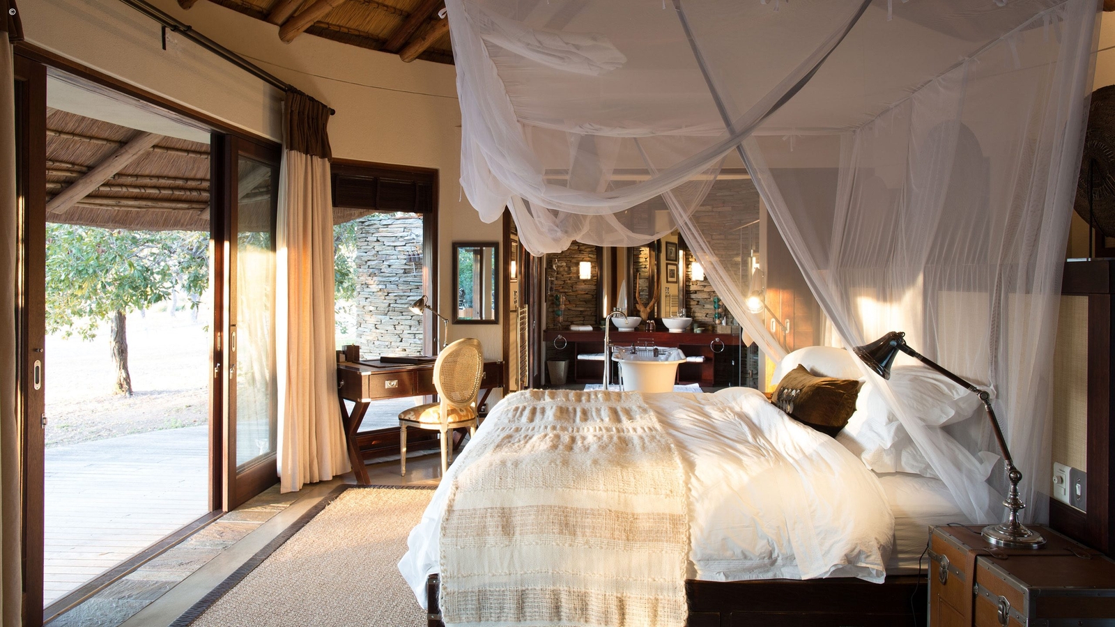 The Main Lodge enjoys stunning views of the dam, a draw for all manner of wildlife. Sun loungers around the pool are perfect for sunbathing, reading or dozing, whilst the cosy loft serves as a quiet reading area or lounge to enjoy TV or a movie. In the main area there are sofas by the roaring fireplace and a supremely well stocked bar. Dining can be a private affair or enjoyed in the lodge’s outdoor boma and dining room.