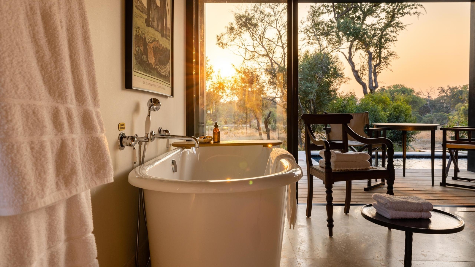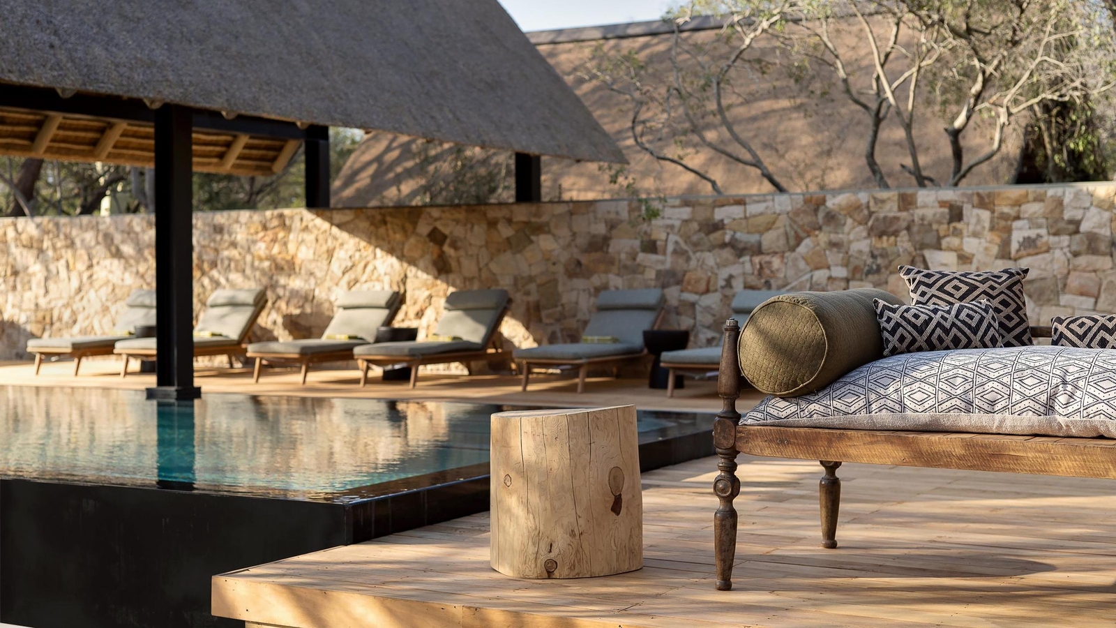 There are just four suites in here, two for families which sleep up to four people, a king size suite and one more private suite for honeymooners. All feature private decks or patio areas overlooking the ever-active waterhole or rugged bushveld. You can dine here in private in the evenings as herds of impala stroll by or convene in the communal dining area at the heart of the camp where you’ll also find the swimming pool.