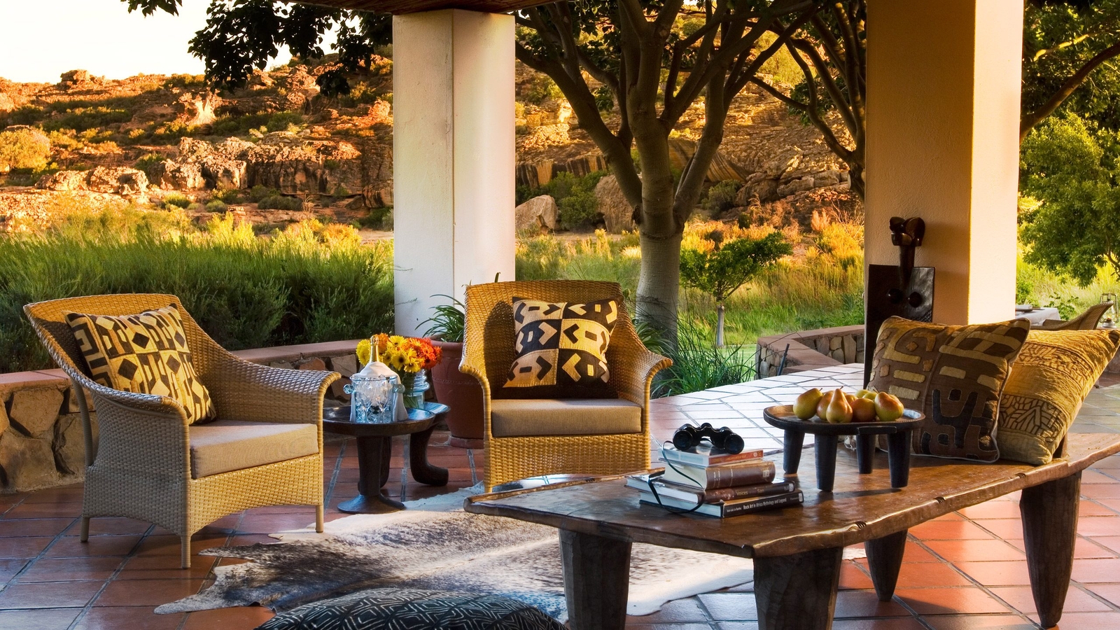 Set into a natural depression of the particularly magical terrain at Bushmans and surrounded by manicured lawns and verdant gardens which contrast heavily with the reserve’s rocky backdrop, this Relais and Chateaux property boasts four different groupings of rooms.