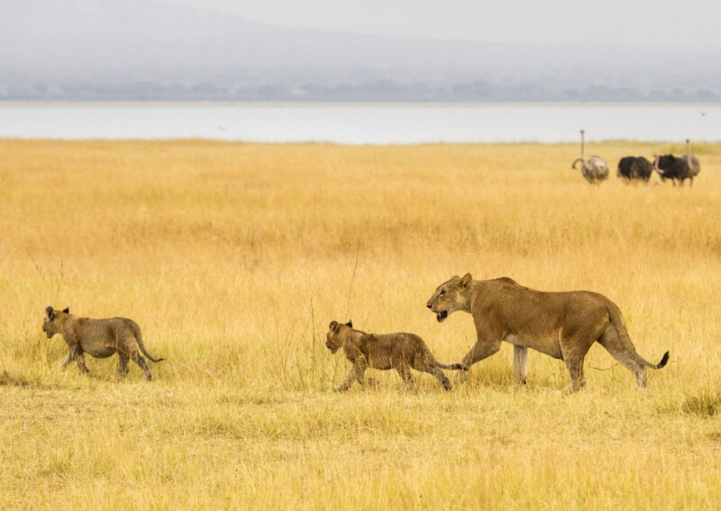 By managing to squeeze a majority of Tanzania‘s diverse habitats, animals and birdlife into just one, and by most standards, small national park (33,000 hectares) Lake Manyara is a very popular park, made even more so for its tree-climbing lions, thriving herds of giraffe and broad range of bird species.