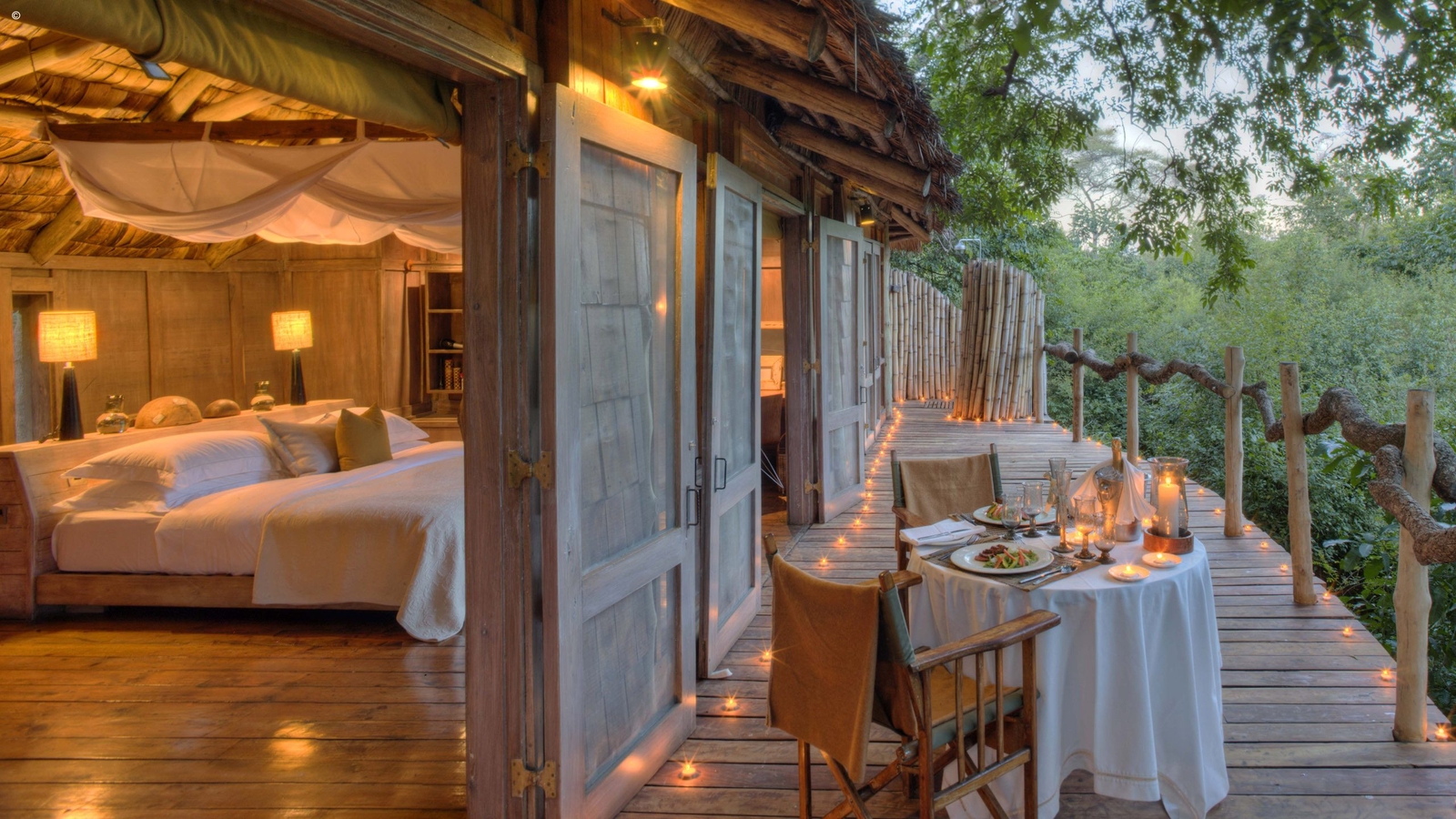 Lake Manyara Tree Lodge is the only permanent luxury lodge in this game-rich national park. Cradled in the boughs of huge mahogany trees, its ten stilted timber and makuti palm fronds treehouse suites blend intimacy and romance in cool, leafy surrounds.