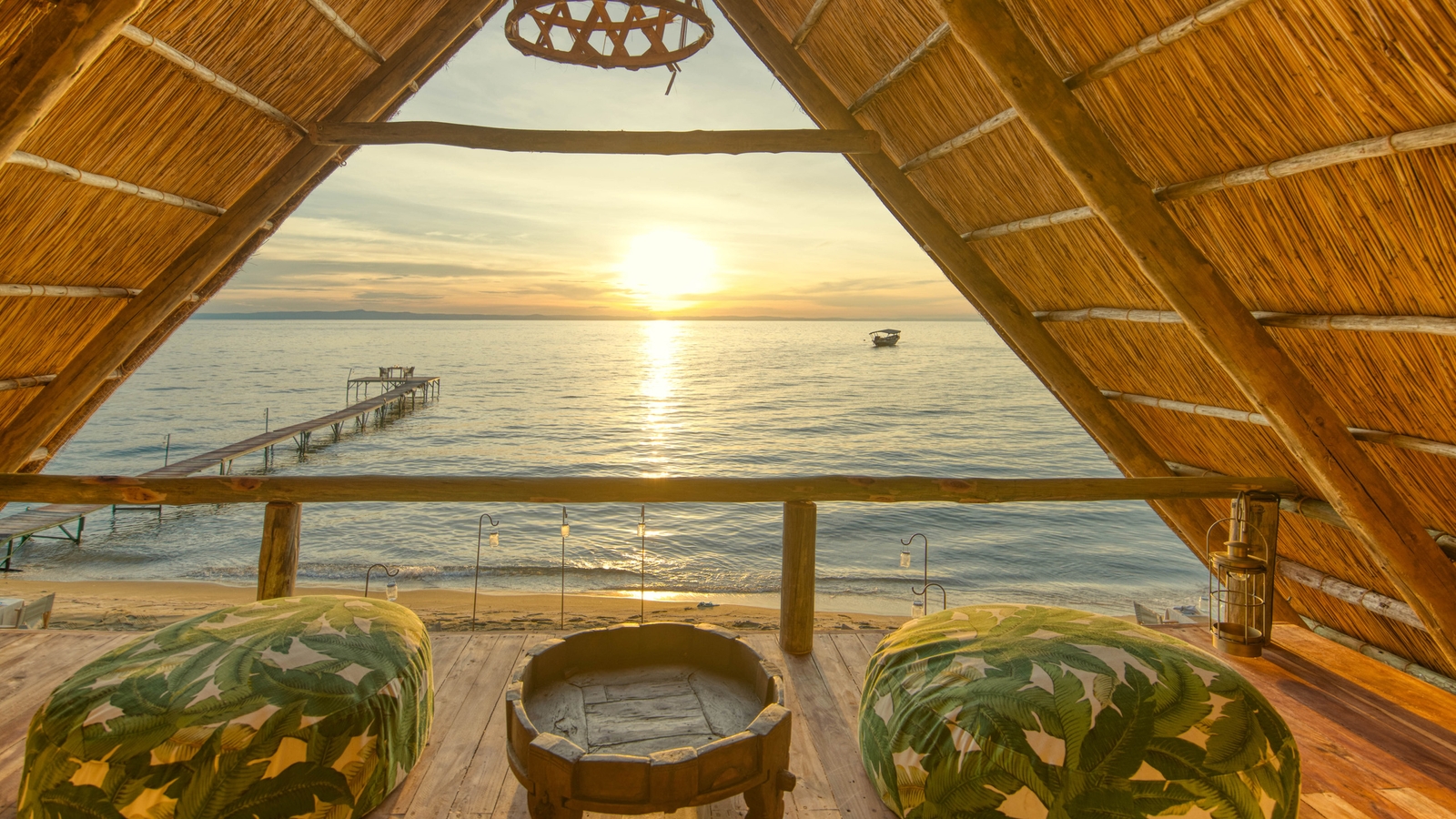 Quite romantically located on sandy white beaches of Lake Tanganyika with the Mahale Mountains as a backdrop, this lodge is an activity rich retreat with a bit of luxury thrown in. Each of the nine tents have four poster beds and are raised up on hardwood floors with the forest subtly creeping up behind them. The private patio areas are perfect for a morning coffee while enjoying views over the clear waters of the lake and the odd splash as fish chase their breakfast in the calm waters.