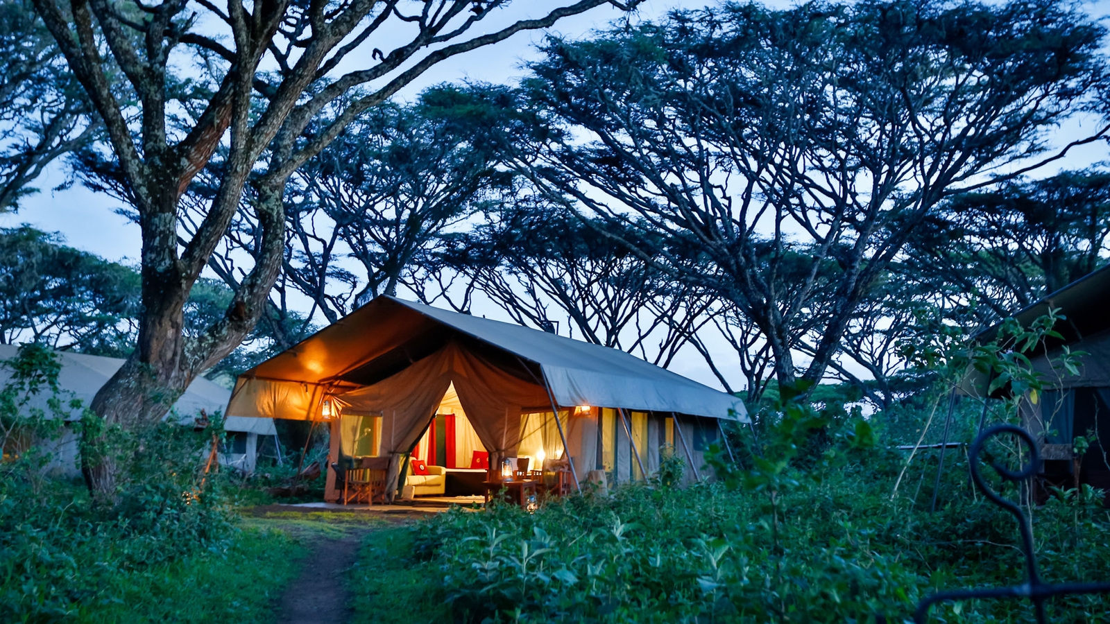 Classic tented safari camp on the crater rim.