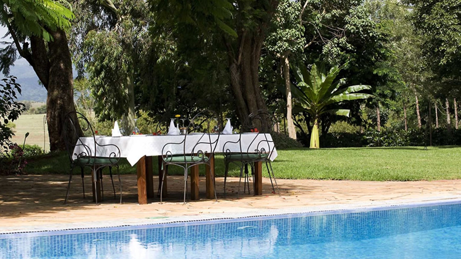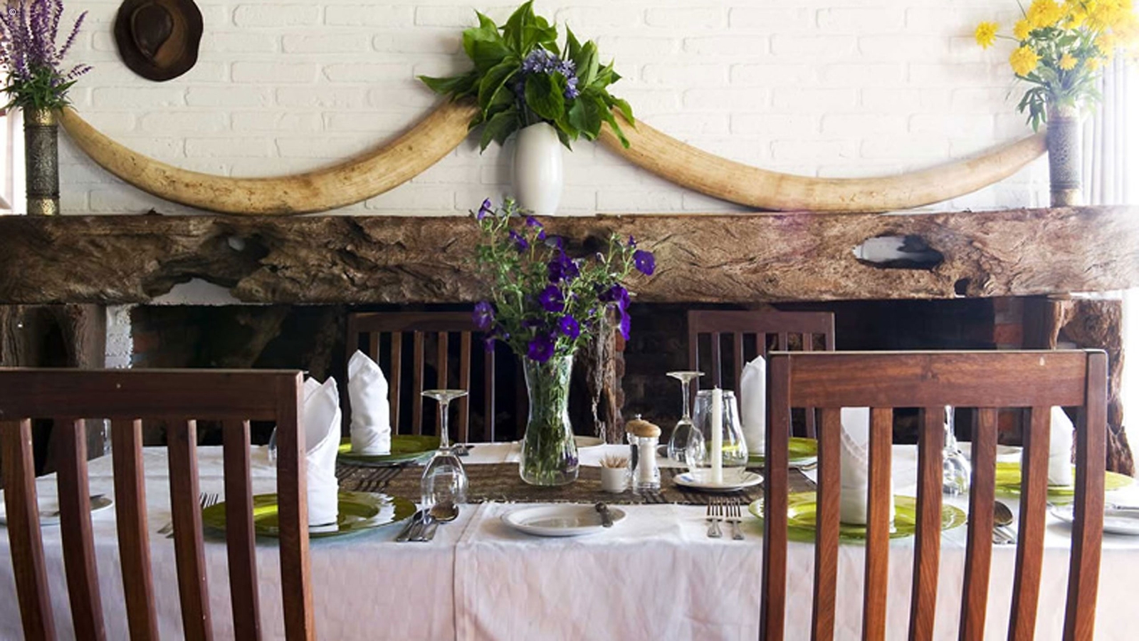 Rustically decorated using local materials and boasting colonial artefacts and bare brick fireplaces, the 52 rooms are scattered throughout the estate and house large comfortable beds with private en suite bathrooms and verandahs. The farmhouse style building with a thatched roof and wrought iron chandeliers houses the relaxing lounge and restaurant. With an extensive south african wine selection and locally grown coffee you will be spoilt for choice.