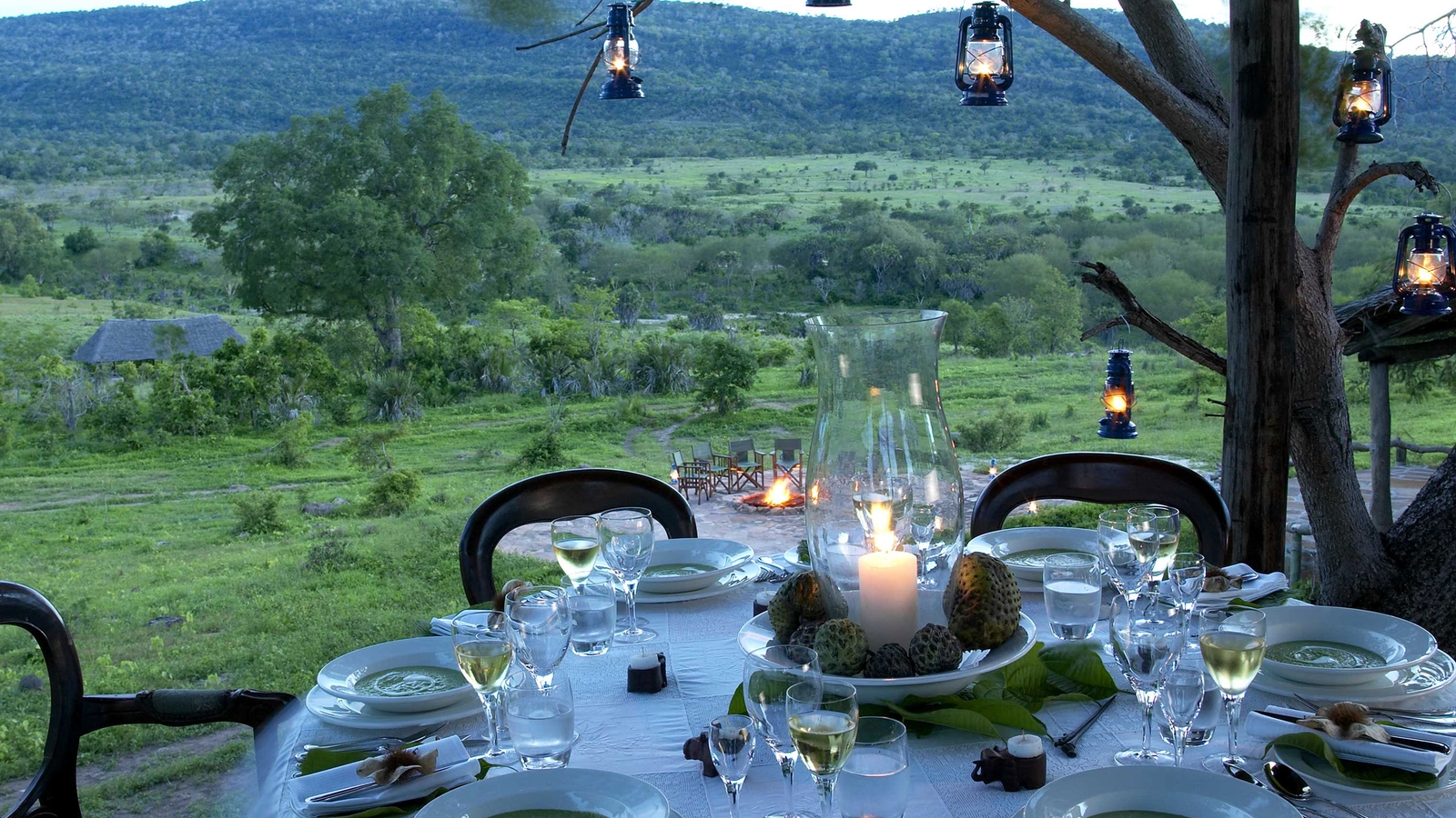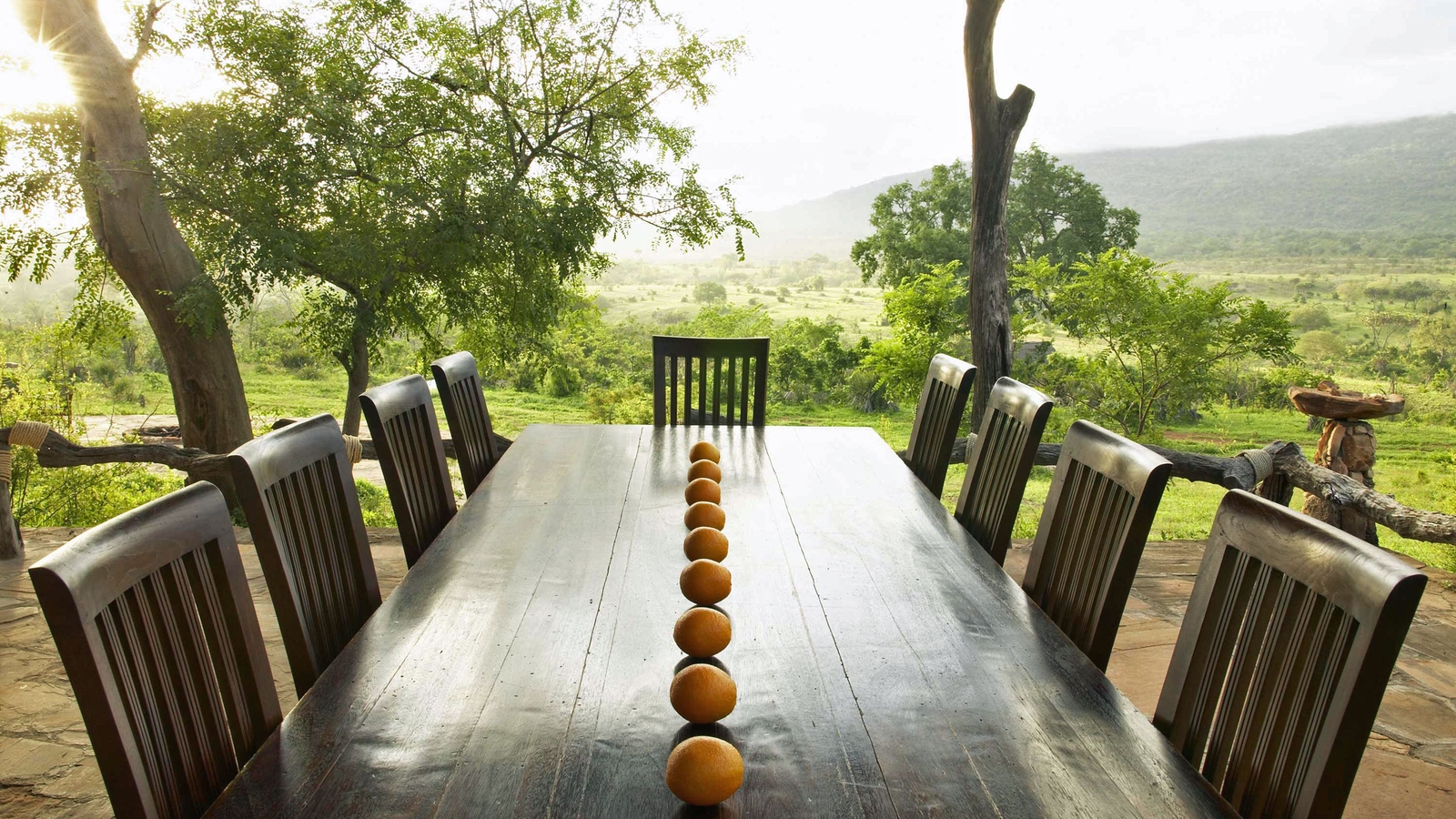 Furnished in the style of a private house with comfortable seating and dining areas the most noticeable thing in the Main House is that there are few walls. Shaded and protected by a huge palm thatched roof there is also a full sized billiards table, the Eagle’s nest for private dining and lots of cosy nooks. Meals are a moveable feast and are not confined to the formal dining area. There are several lookouts where breakfast and lunch are served and of course areas for dining under the stars. Bush Breakfasts and picnics are also arranged for longer safaris.