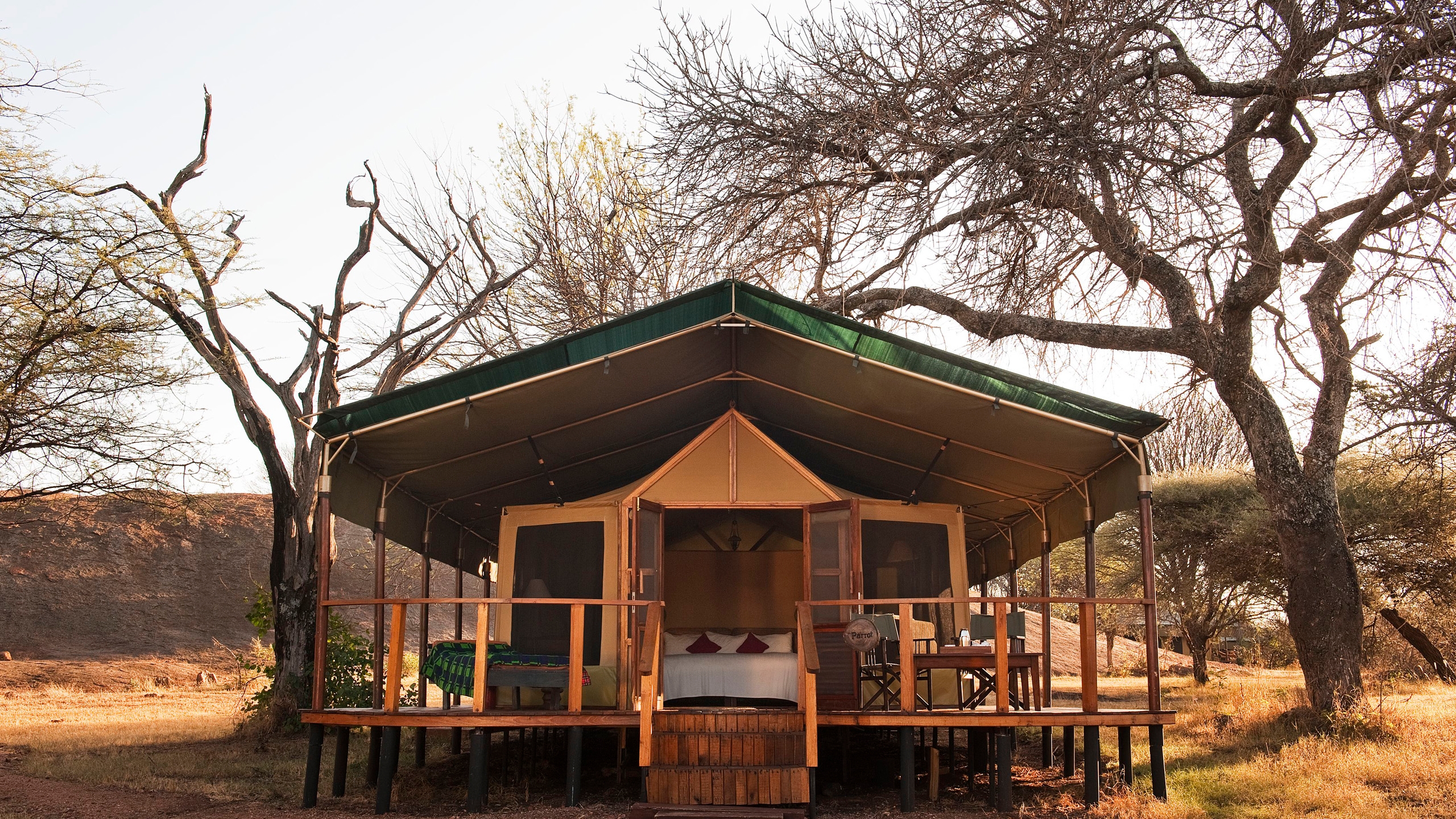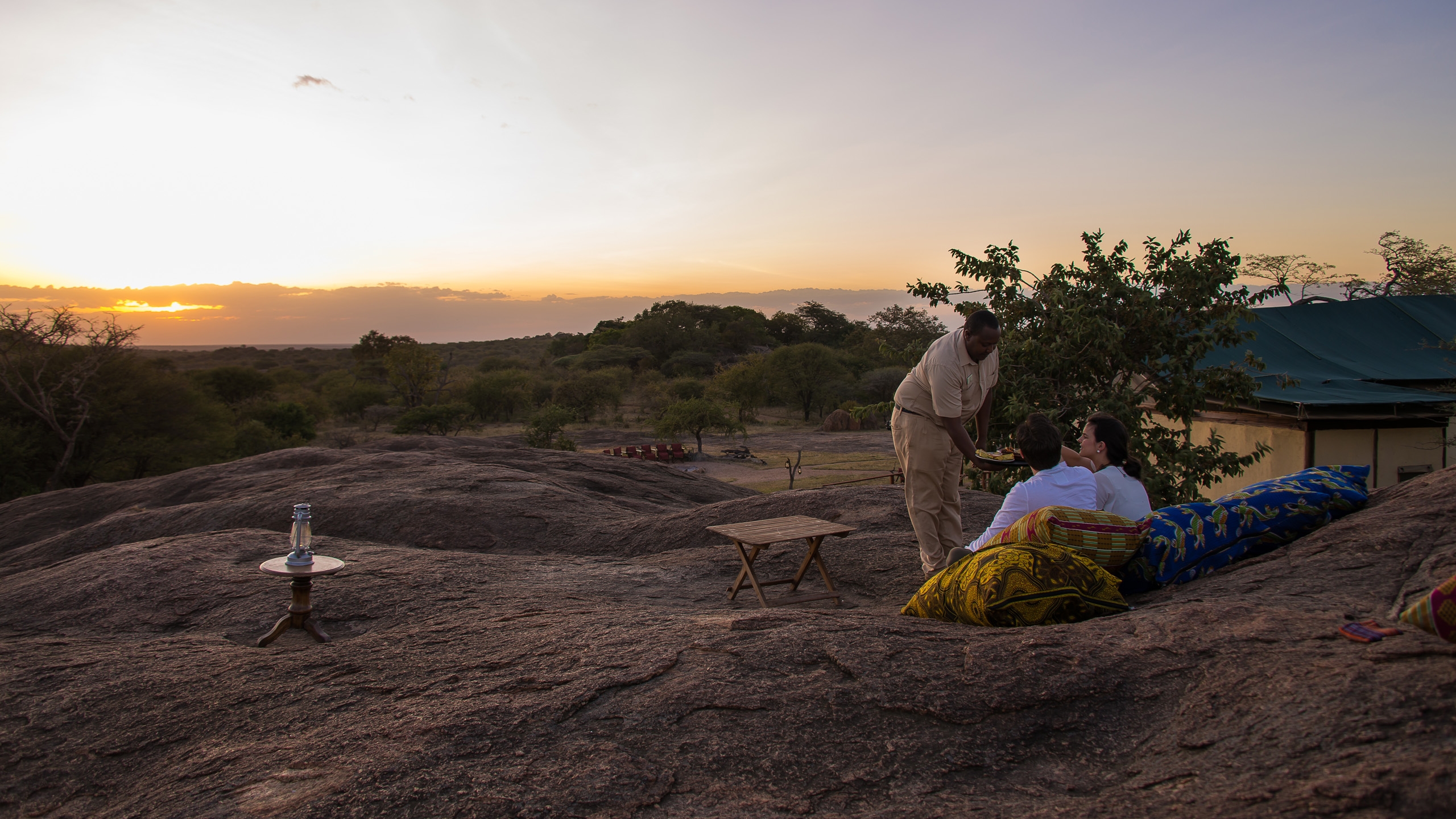 One of the best camps for viewing the migration as it ventures south of the Serengeti National Park, Kusini Camp offers you views from up high as it hides among a cluster of kopjes overlooking a game rich plain below.