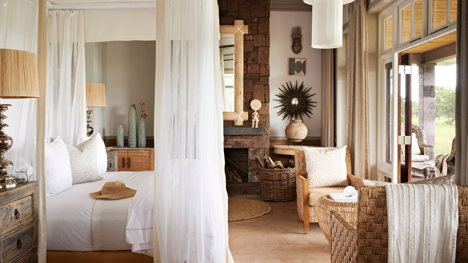 Within the house there are four spacious rooms; two suites in the main house and two garden suites, situated either side. Each of the rooms has a very unique and homely feel, which contributes to the understated glamour of Serengeti House.