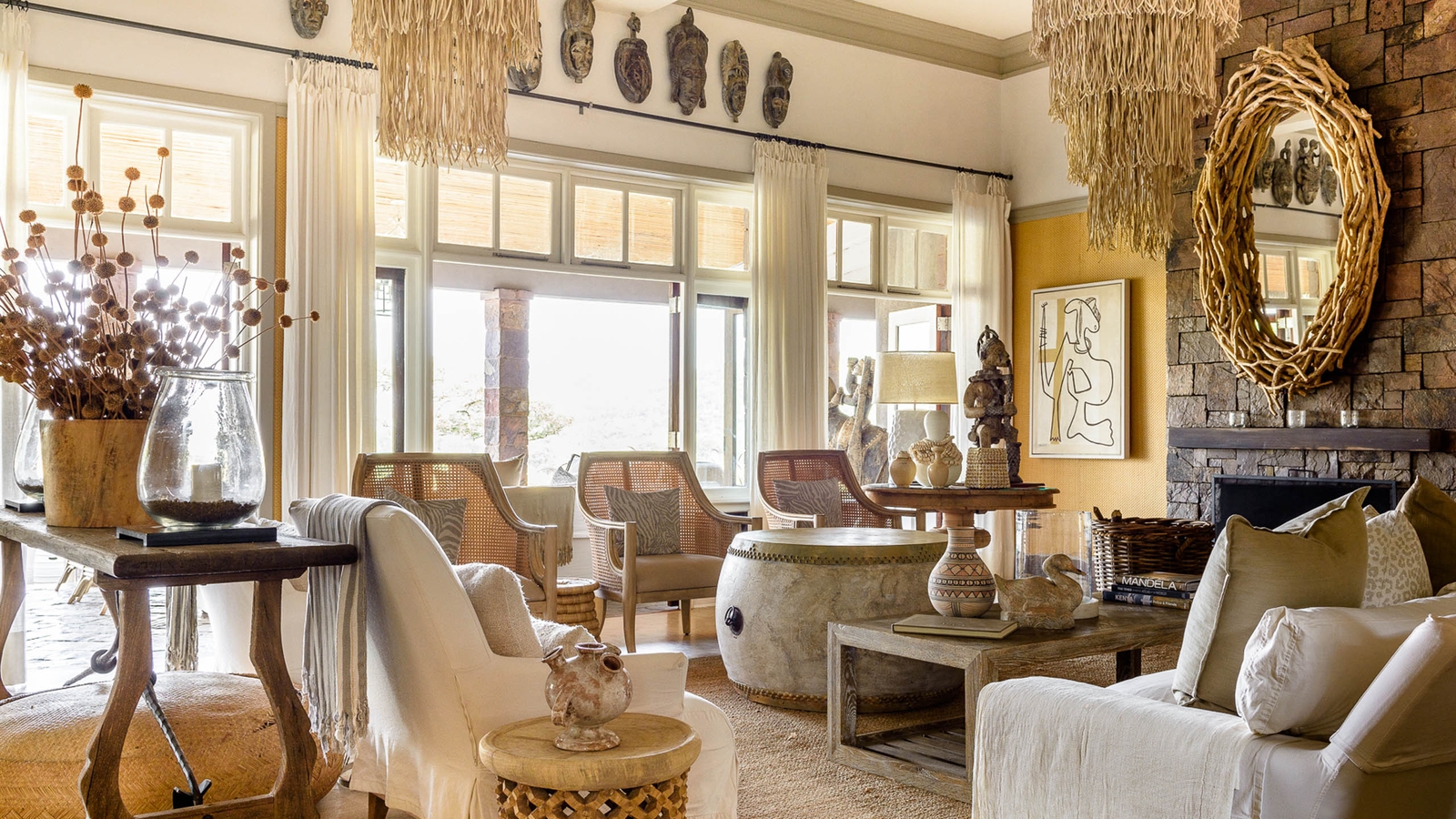 The property enjoys picturesque views of a watering hole, from its perch on the south east of the hill slopes. Décor represents a mix of European country designs and African artefacts and the house provides ample space throughout the indoor and outdoor lounging areas, all which offer interrupted views.