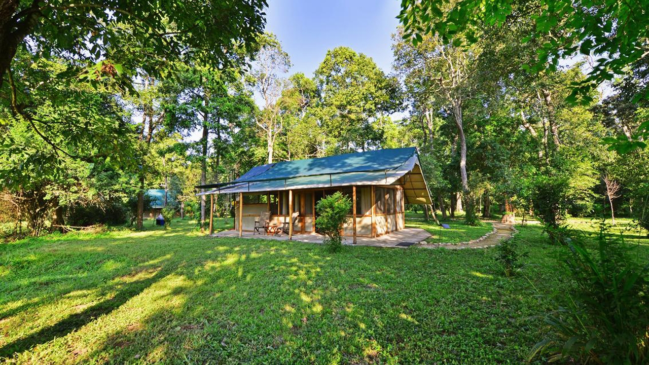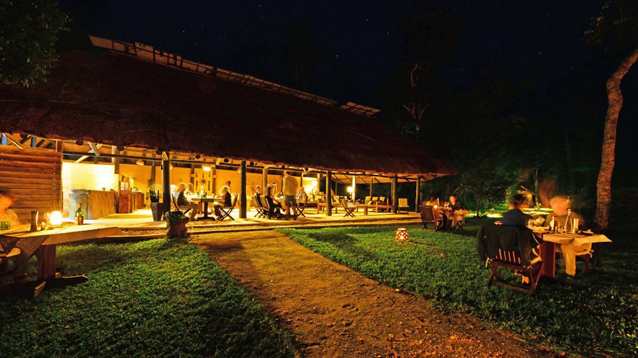 Each of the ten spacious framed canvas rooms, situated in the wooded area besides the river, is comfortably furnished. Decorated with large mosquito netted beds, they all come with their own private en-suite bathroom and dressing area, providing running water, hot water ‘bush’ showers and a flushing eco-friendly toilet. There’s no better way to end a day here than under the trees next to the river, where you can enjoy freshly prepared meals which utilise many local ingredients, as well as relax around the evening ‘fireplace’ for sundowners and a chance to share the day’s experience.