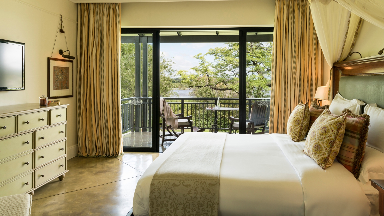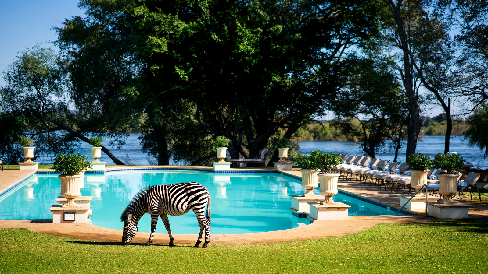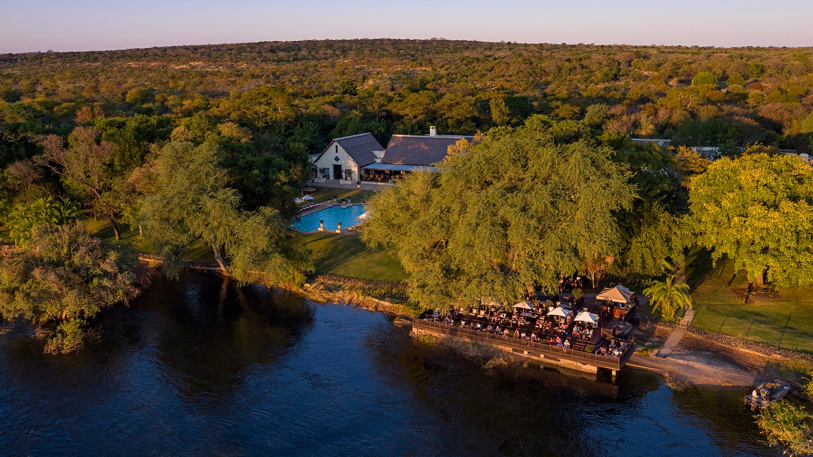 Set just a short walk away from the falls themselves on the banks of the Zambezi, one can admire the coil of steam and spray rising from the falls on the horizon.