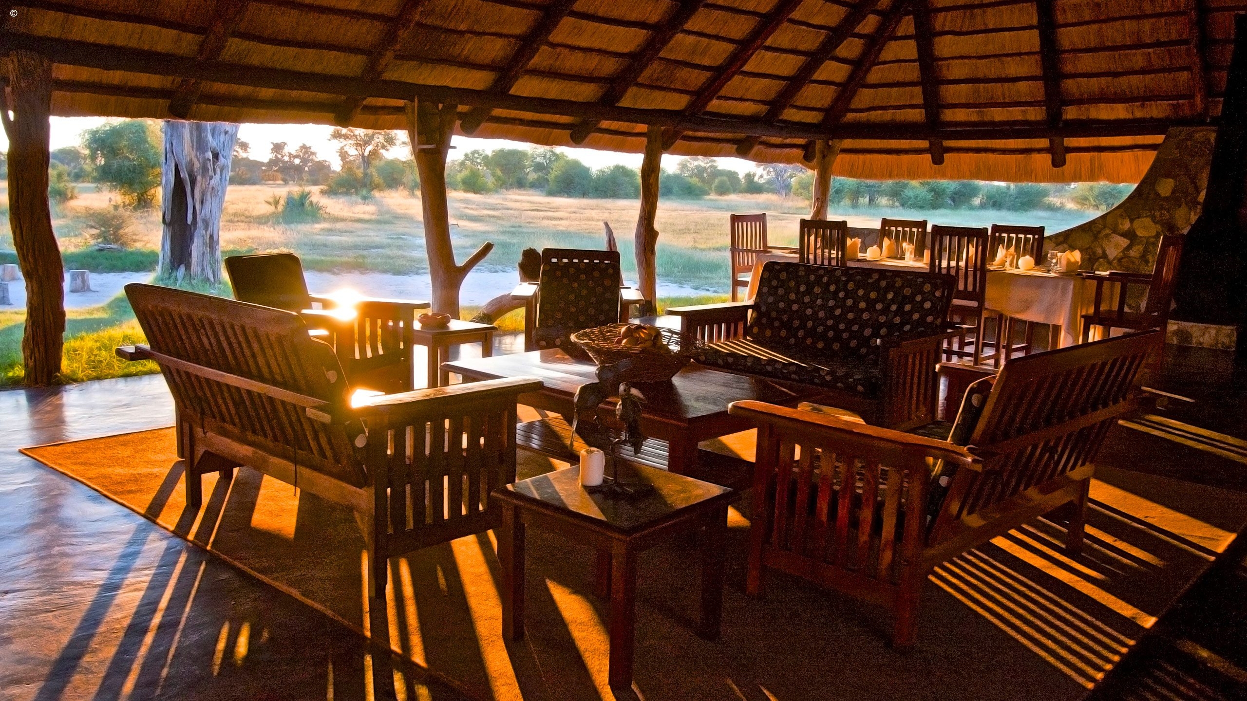 Main lodge comprised of open dining area, lounge, bar and views over the Bomani Pan