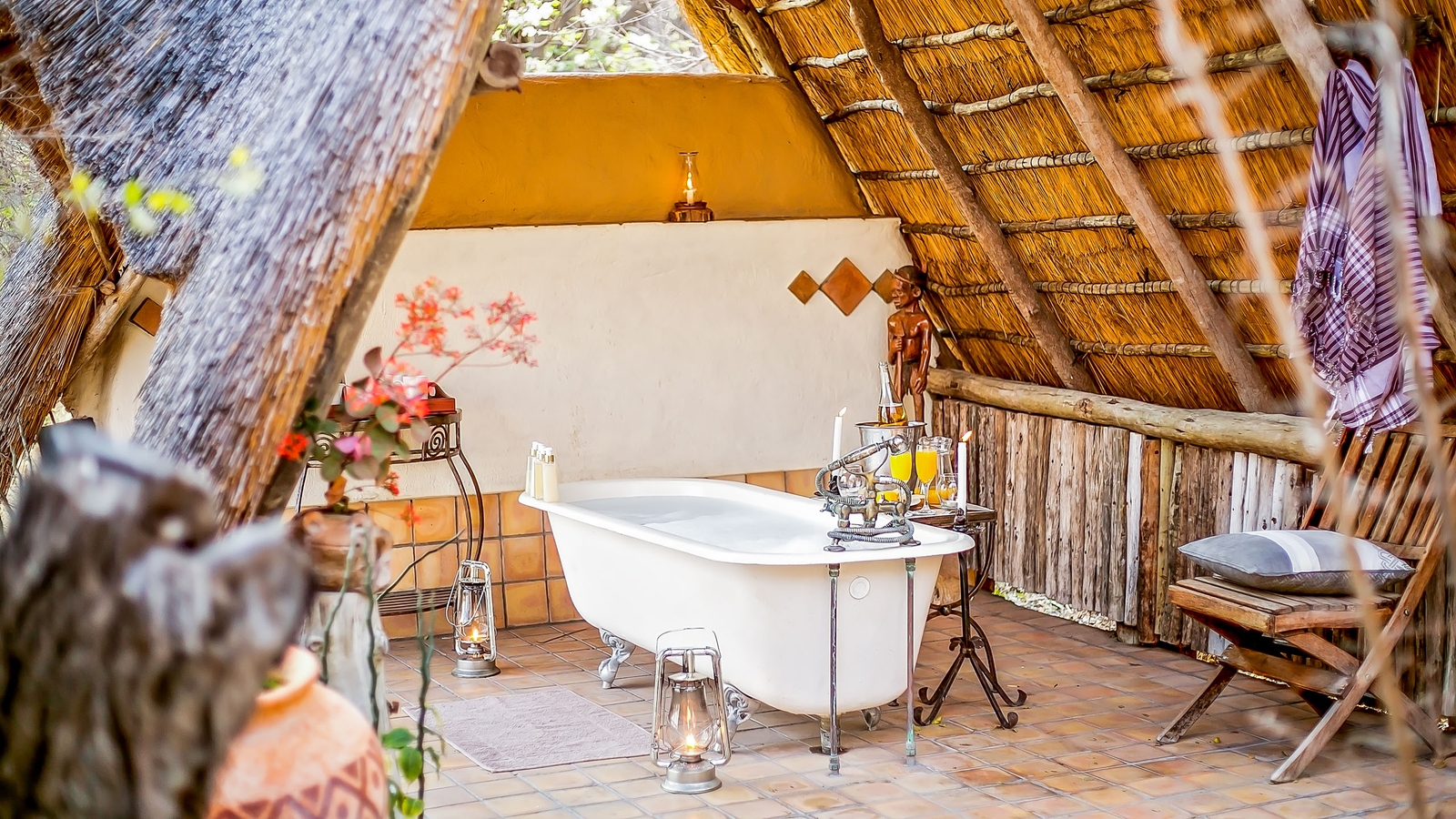 During a stay here you can expect to see herds of elephants, buffalo, lion, leopard and African wild dog, as well as some of the four hundred bird species, which you can spot on game drives and walking safaris. There’s a waterhole just metres away from the tents, which attracts a wide variety of wildlife and can be viewed from your personal veranda or the hide. Other activities include visits to community projects and conservation initiatives.