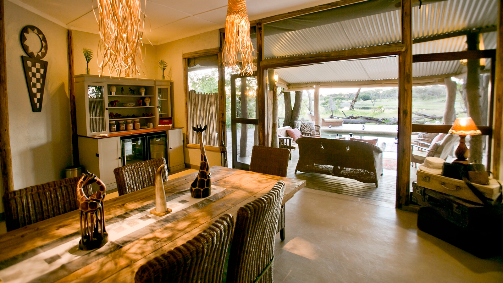 The hub of the camp is the ‘A-frame’ which houses the dining room, a downstairs sun lounge and a large comfortable lounge area upstairs. There’s also a plunge pool near the main lounge and dining room, and a tunnel leading to a wine cellar and hide.